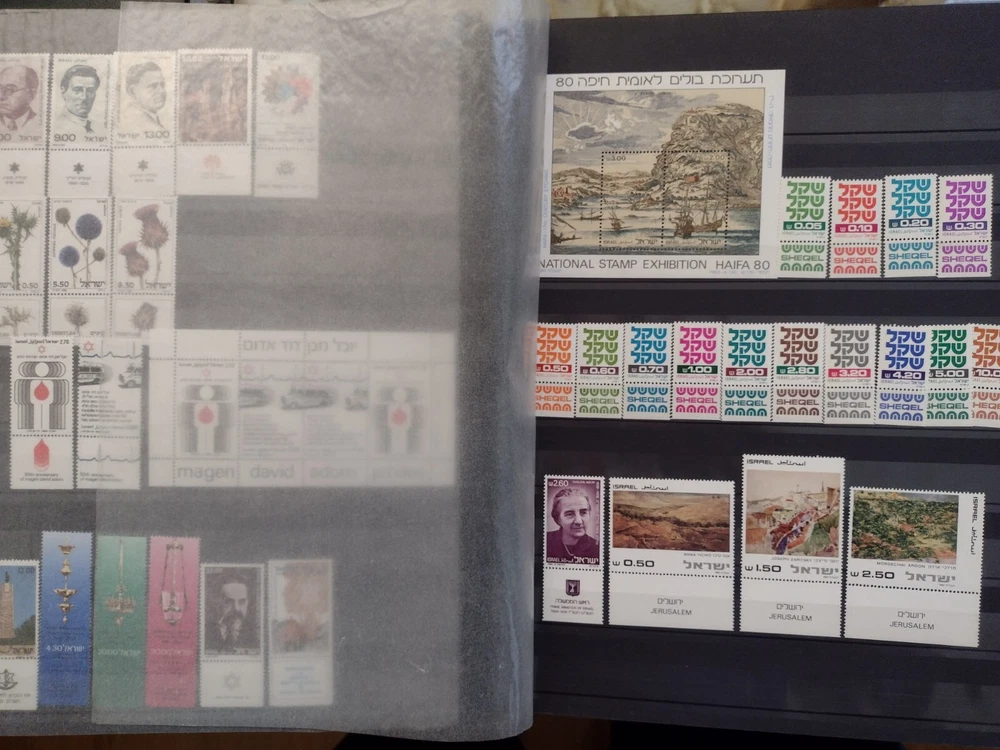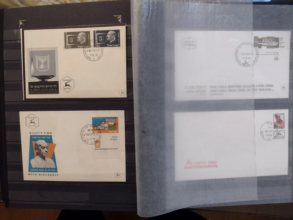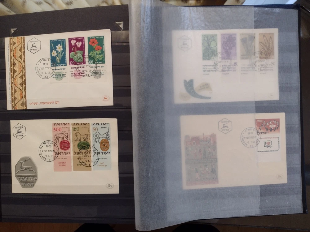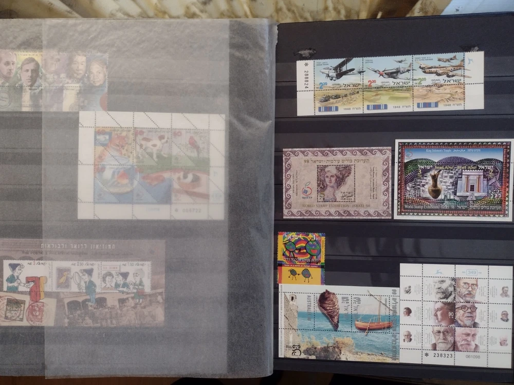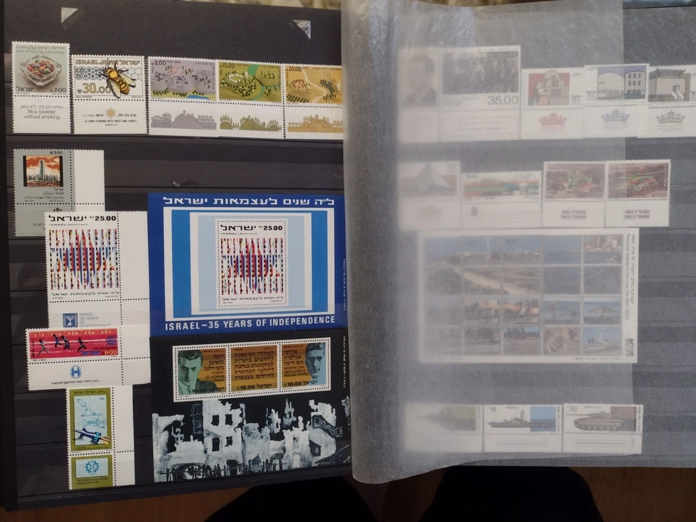 ISRAEL COLLECTION ALBUM MNH ALL STAMPS FULL TABS COMPLETE SETS 1954-2001, C18-C47,J12-J20,O1-O4,FIRST DAY COVER, 920+ STAMPS, 56 SS. 18 SCANS TO USA -$24.75 INTERNATIONAL MAIL $88.00 REFUND SHIPPING WILL BE PAID BY BUYER