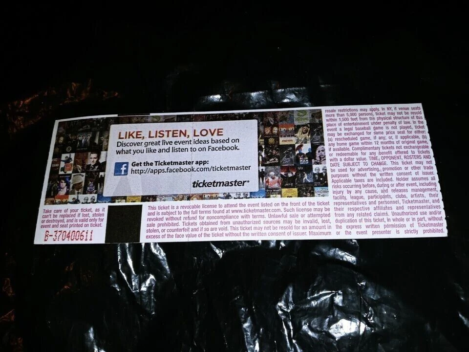 Up for auction is an actual hard physical ticket from the concert in the Chicago area suburb of Waukegan. This is an actual ticket not a reprint. Condition = Great, see pictures! Check my + feedback & buy with confidence! See my other other auctions for more tickets, drumsticks, shirts & other stuff. Thanks