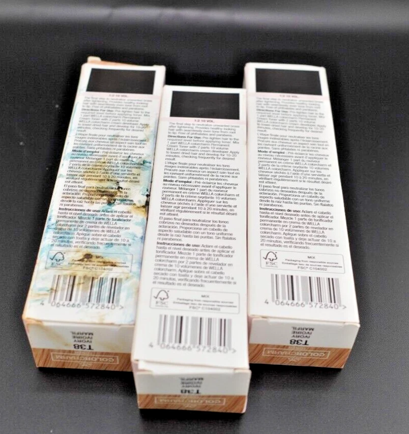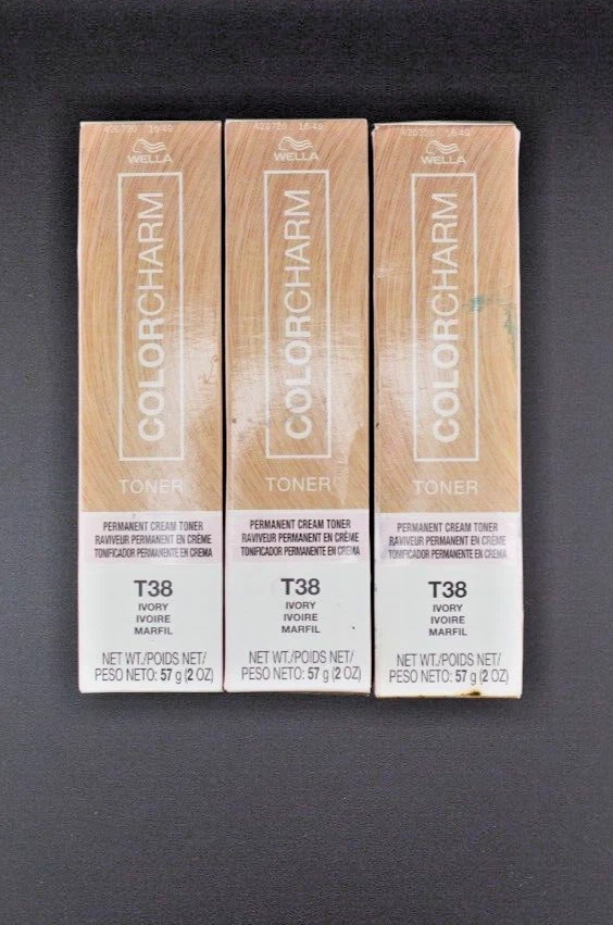 COLORCHARM T38 IVORY WELLA NEW IN BOX. PACK OF 3, STAINS ON BOX BUT PRODUCT UNNAFFECTED.