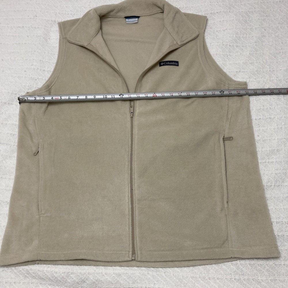 Insulation Material: Polyester Two Pockets: Zip-Up Chest Size: See Pic Size Type: Big & Tall Features: Full Zip Color: Beige MPN: Does not apply Performance/Activity: Cycling, Dance, Golf, Hiking, Hunting, Riding, Running & Jogging, Skiing, Tennis, Walking, Fishing, Tailgating, Biking UPC: Does not apply Country of Origin: Bangladesh Manufacturer Color: Beige Theme: Outdoor Type: Vest Garment Care: Machine Washable Fabric Type: Fleece gtin13: Does not apply Department: Men Product Line: Columbia Sportswear Character: N/A Pattern: Solid Lining Material: Polyester Handmade: No Accents: Logo Size: 2XT Model: Columbia Brand: Columbia Closure: Zip Vintage: No Occasion: Business, Casual, Party/Cocktail, Travel, Workwear Character Family: N/A Style: Vest Season: Fall, Spring, Summer, Winter Outer Shell Material: Polyester