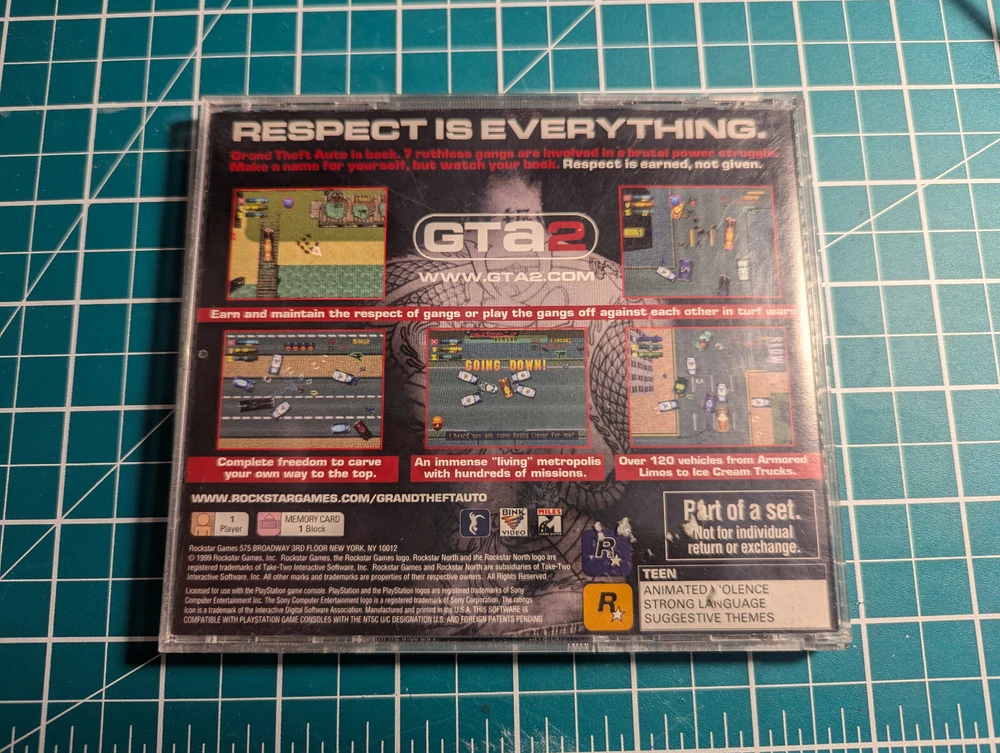 COMPLETE IN BOX Grand Theft Auto 2/GTA2 (Collectors Edition) for the Sony PlayStation 1 Expected wear for a jewel case and disk of this age, disc has been marked with marker in some spots. Everything works. No severe scratches or cracks. Comes with box, manual + inserts, and disk. Perfect for collectors! Message me if you have any questions! Thanks so much!