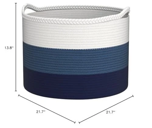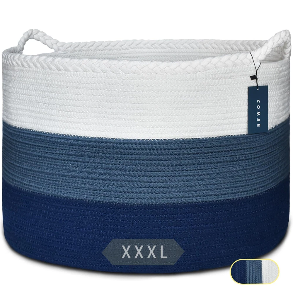 【Cotton Rope】Healthy material and chemical-free woven basket, safe for kids and pets. 【Soft and Sturdy】Strong and reliable storage basket, stand on their own, no collision scratches, perfect to accommodate baby's clothes and other toys in nursery. 【Large Size】21.7" x 13.8", large blanket basket which is perfect for throw pillows, blankets, toys, clothes, Comforter or Cushions. Whether it is helping your child develop clean living habits, or as a decorative basket for your friends. With the appearance and practicality, we believe COMSE cotton storage basket is perfect as a gift for Birthdays, Festival. 【Great Design】Durability handles, easy to move and take away. Neutral color design, healthy materials and multiuse design, will also be a unique home decor addition to your home. Perfect for your laundry room, bedroom, kids room, or living room. 【Notes】Laundry basket fold up during transported, it will return to its best shape if filling it with towels or blankets. Fast remove the creases by ironing it. We only offer high quality products so we are sure you will be satisfied with our cotton rope basket. If you have any dissatisfaction, please contact us and We will provide you with a satisfactory solution.