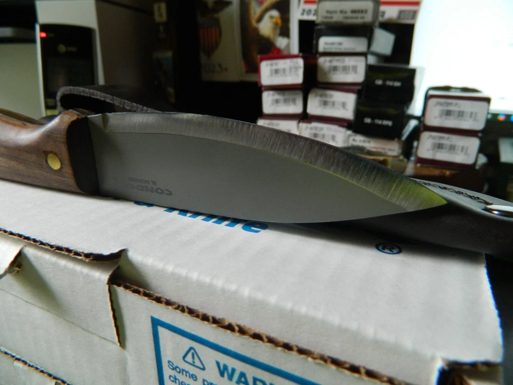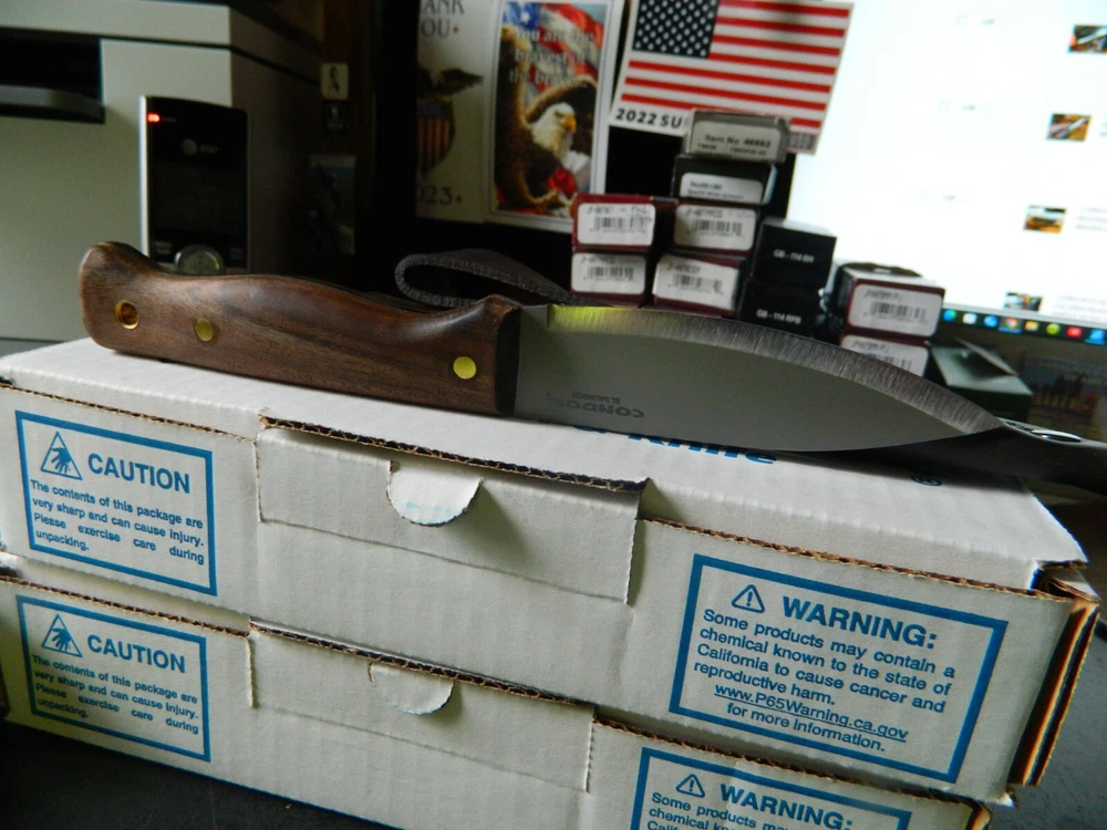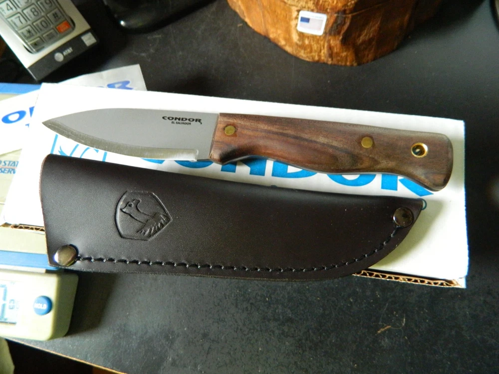 CONDOR TOOL & KNIFE Brings you their * BUSHLORE* 9 1/4" FIXED-BLADE KNIFE. This awesome knife has a 1075HC High-Carbon Blade with a Bead Blast Finish. The blade is very sharp you can easily see that in the pictures, and its 4.5" long 1 1/4" wide and 1/8" thick full tang construction. The Handle is solid Dark Walnut with two brass rivets and a lanyard hole. It is 4 3/4" long and molded for your hand to have a frim grip, wood is rated #1 for grip wet or dry. Model # CTK23243HC, you will also receive a high-end cowhide leather belt sheath Dark Brown. This knife weighs 5.5oz. 7.7oz. with the sheath. Features: 9.25" (23.5cm) overall. 4.25" (10.8cm) bead blast finish 1075HC steel blade. Walnut handle. Lanyard hole. Full tang. Black leather belt sheath. Please view the pictures to help you decide if you would like to own one of these great knives. We will give you $$$$$$$$$$$$$ FREE SHIPPING $$$$$$$$$$$$$ to help you get one. WE THANK YOU AND GOD BLESS YOU,- STAY SAFE. Please look in our eBay store to see all of the Condor knives we have. by adding my eBay Store to your Favorites, . - Sign up and receive our emails, why SALES that is the only email we will ever send to you. We are always trying to get different knives into your hands, so by saving you some money maybe you will try out a new brand. Plus every listing we have is put on sale from the highest to the lowest priced items, and lastly many times we put knives that there are only 1 or 2 left in our stock by receiving our email you will get first shot at these items, Thank you Greg