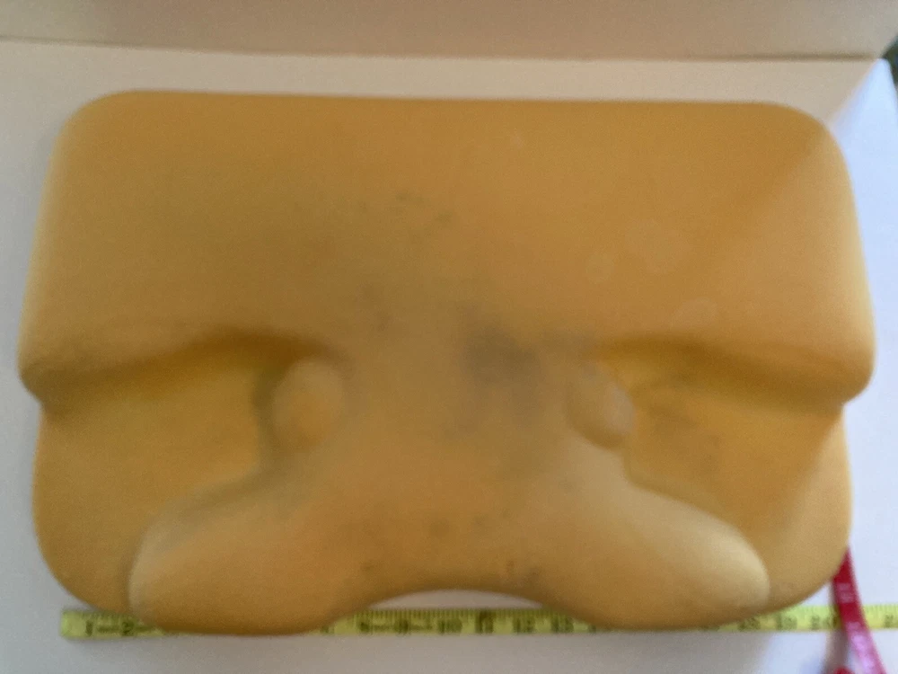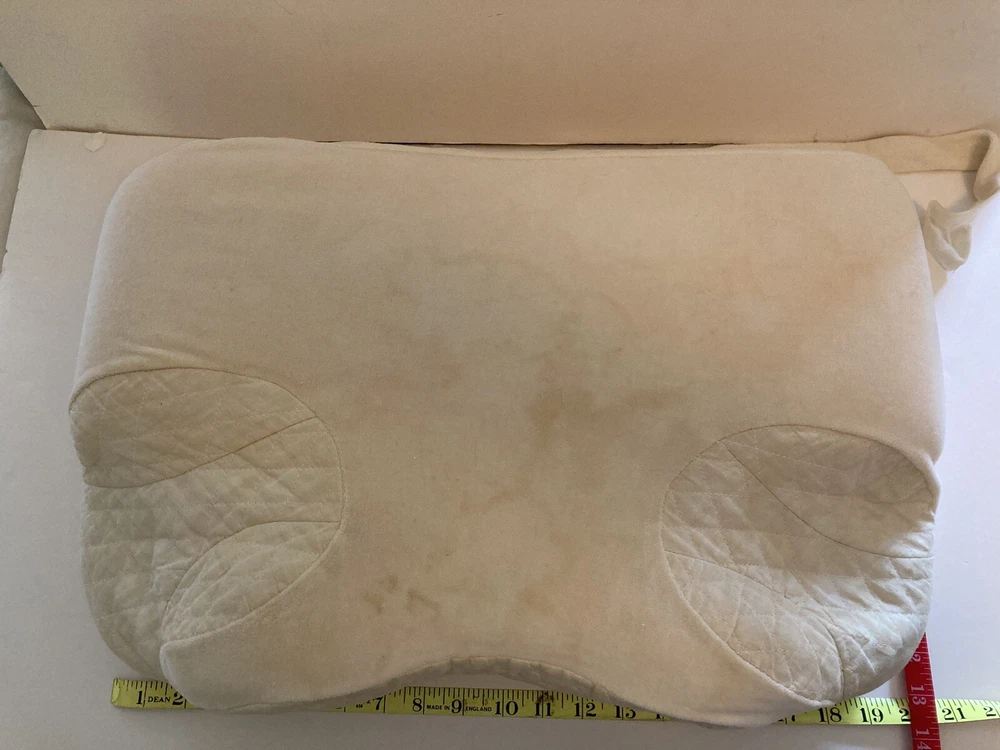 My husband's old CONTOUR PRODUCTS 5 Inch CPAP Pillow Memory Foam Washable Cover Used He tried it for a while with the CPAP and then went back to a regular pillow. Pillow itself is in good condition. Cover is off white with some yellowed stains that did not come out despite soaking the pillow cover in oxy clean and then sending through washing machine. See photos for details.
