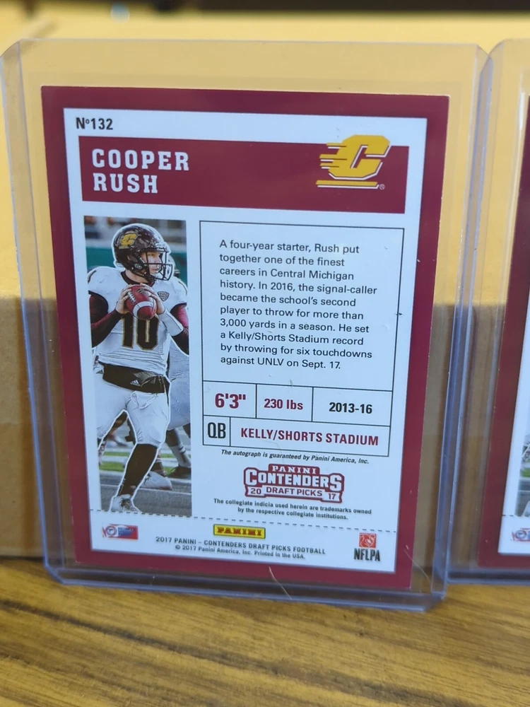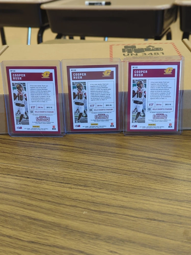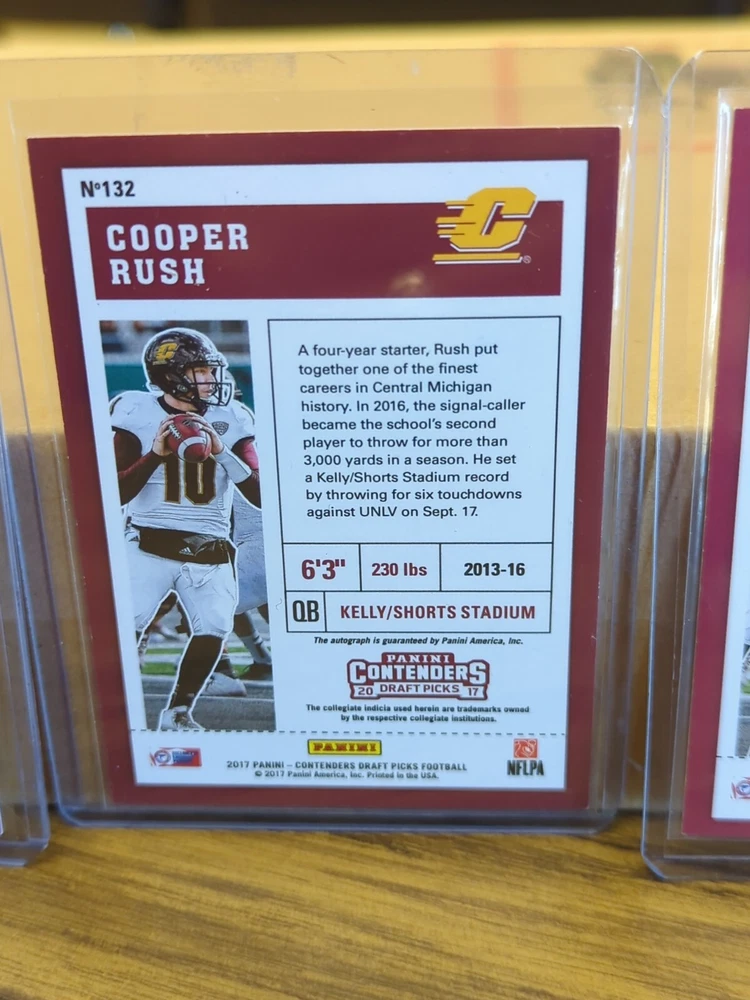 COOPER RUSH 2017 Panini Contenders Draft Picks Auto RC-3 card SUPER INVESTMENT LOT COWBOYS! Any scratches or blemishes are on the top loaders. Invest now! Payment is requested within three days of sale date. Please see my other items currently on ebay.