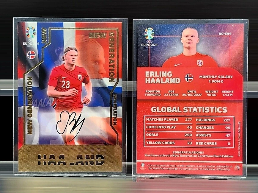 Manufacturer: Flash Edition League: Copa América Features: Limited Edition Year Manufactured: 2024 Set: Copa America USA & Euro Cup 2024 Parallel/Variety: Foil Type: Sports Trading Card Country/Region of Manufacture: Spain Player/Athlete: Diego Maradona, Gareth Bale, Gianluigi Buffon, Jamal Musiala, Jude Bellingham, Julian Alvarez, Lionel Messi, Luis Suárez, Zlatan Ibrahimovic, Pele, Endrick Felipe, Earling Haaland Team: Argentina, Brazil, England, Germany, Italy, Norway, Sweden, Uruguay, Gale Sport: Football, Soccer Season: 2024