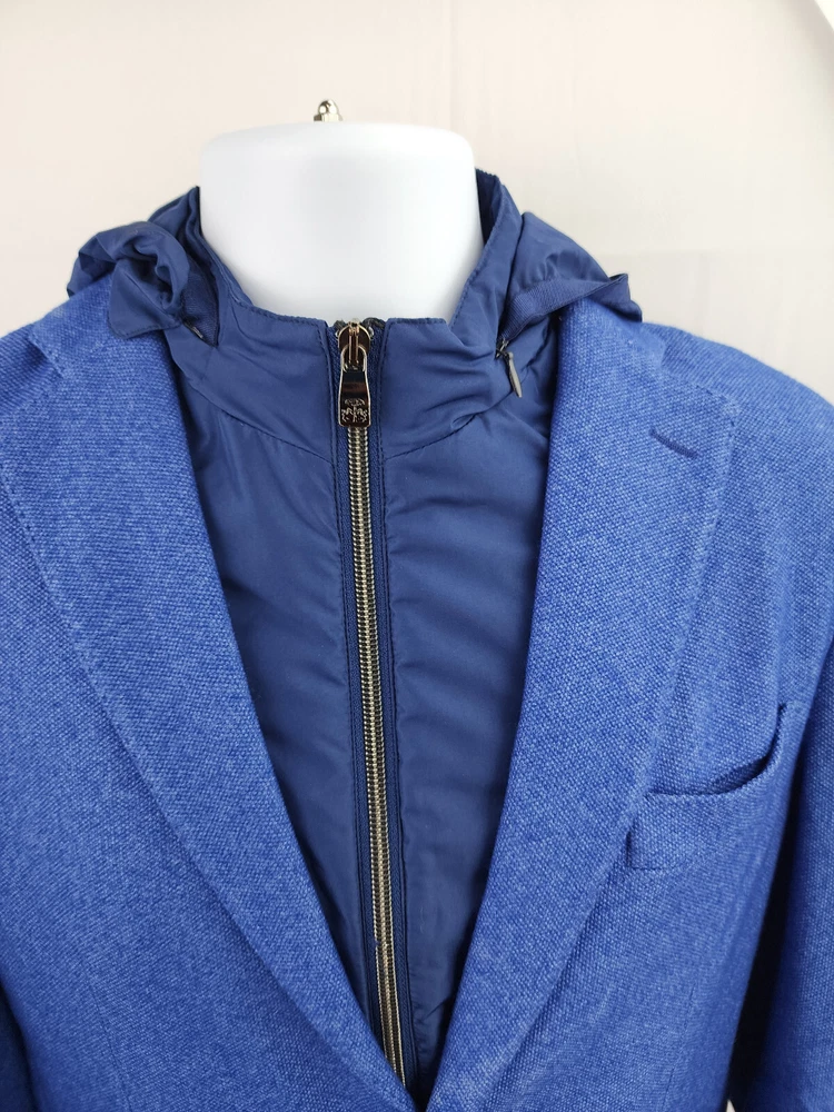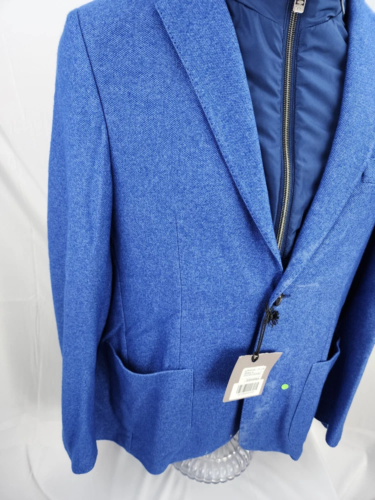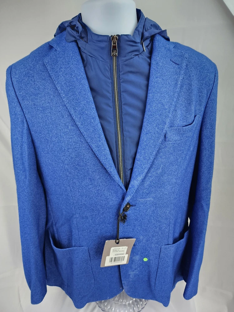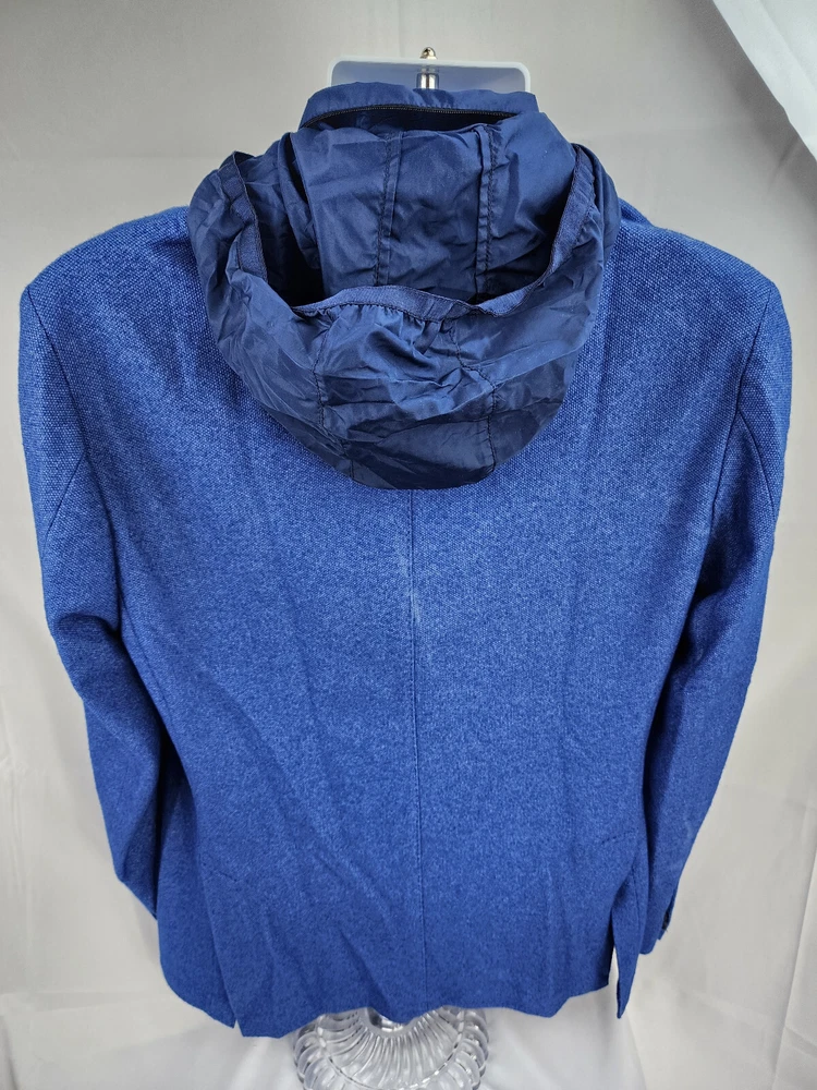 Available for sale is a luxurious New With Defects Men's Corneliani ID 50% Cashmere 50% Silk Textured Blazer in size 48 (fits a US 38 to 40). This stunning blazer is extremely soft and is in a very beautiful blue color. It features a luxurious pique texture and the fabric feels knit and has almost no inner lining making it almost unstructured. On the inside of the blazer is a vest that zips up and that can be removed along with the hood. Made in Italy by Corneliani, this blazer is exquisite and is among the softest I have felt. More details below including measurements. This blazer does have a few flaws which are stains or sun fading on the front and back as pictured that aren't very visible when worn. One-of-a-kind blazer and inner vest at a fraction of retail. Retails for $2395 Measurements: Chest: 22" Shoulder: 18" Sleeve: 9.5" Length:26.75" Payment: We Accept eBay Payments and PayPal and most debit & credit cards and linked bank accounts. Shipping: We ship within 24-48 hours and we generally use USPS Ground Advantage or USPS Priority Mail for most of our shipments. We ship to all 50 states and we also ship Internationally as well, using eBay's International shipping service. We also offer expedited International shipping for an additional cost as well.