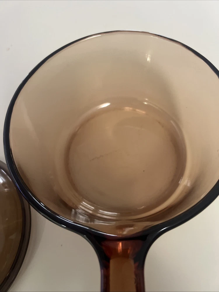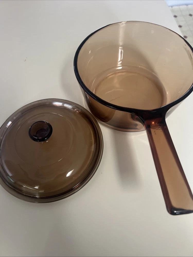 Elevate your cooking experience with the timeless elegance of the CORNING WARE VISIONS Amber Cookware set. This charming two-piece collection features a 1.5-liter pot with a durable Pyrex lid, perfect for a variety of culinary tasks from simmering sauces to boiling grains. The amber glass-ceramic construction not only adds a touch of retro charm but also offers a glossy finish that's as stylish as it is functional. Crafted in the United States during the vibrant era of the 1980s, this set embodies the quality and design excellence synonymous with the Corning brand. Its solid pattern and round shape complement any kitchen decor, while the stovetop, oven, dishwasher, and microwave-safe features ensure versatile usage for all occasions. Whether you're a seasoned chef or a home cook, this saucepan with lid is a must-have addition to your cookware collection.