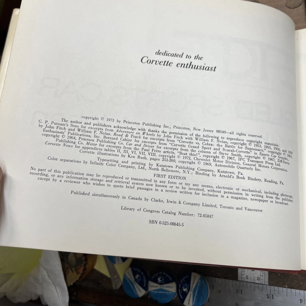 CORVETTE COMPLETE HISTORY BOOK 1952-1973 Original Copy FREE SHIPPING NICE copy Great shape Original dust jacket Lot - P.Lu.111