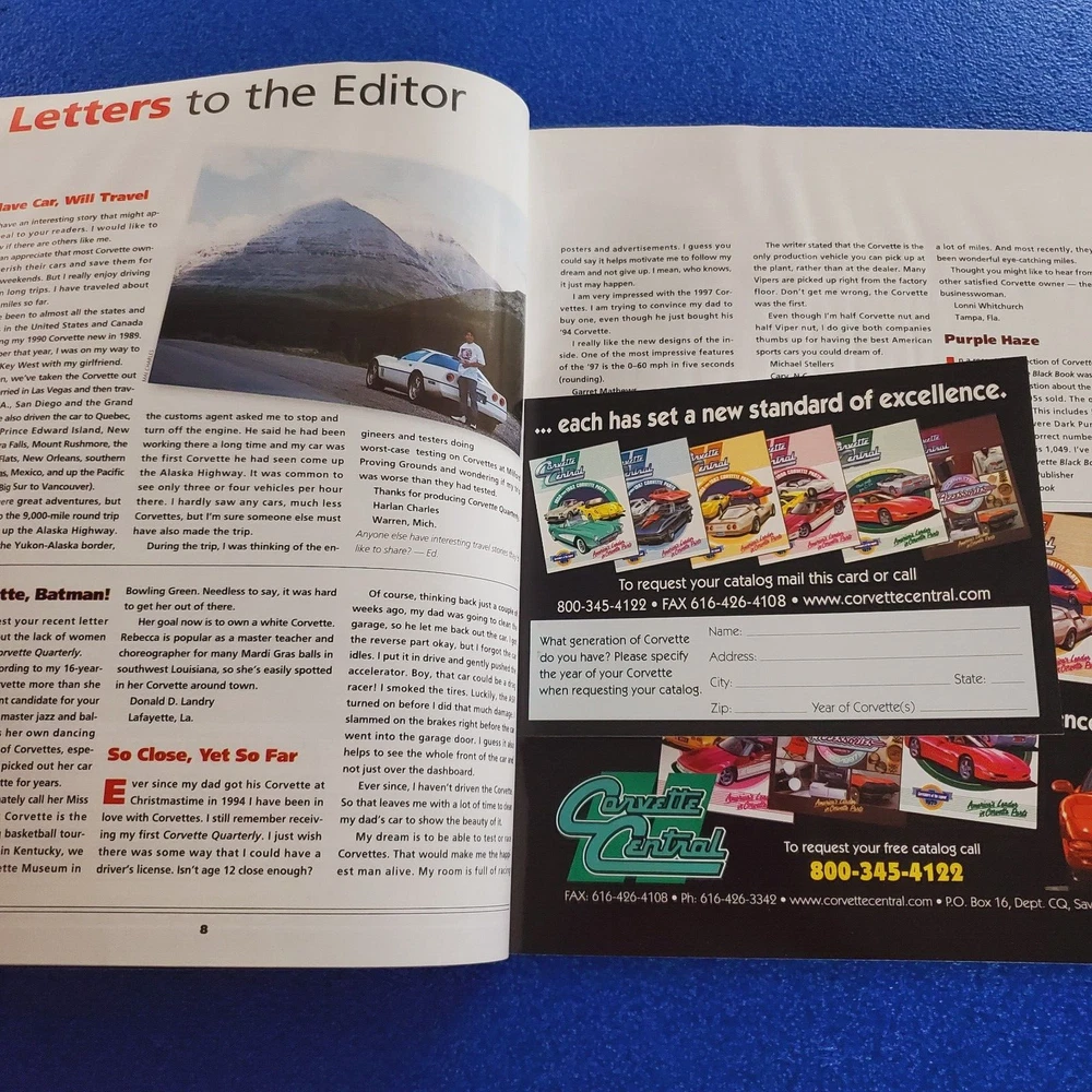 YOU GET THE MAGAZINE YOU SEE IN THE PICTURES - CORVETTE QUARTERLY: ROAD TRIP! HISTORIC ROUTE 66 SPRING 1998 - VERY GOOD CONDITION - PLEASE READ ITEM CONDITION ABOVE FOR MORE DETAILS - SHIPPING IS FREE - APPROX SIZE IS 8in X 10.5in