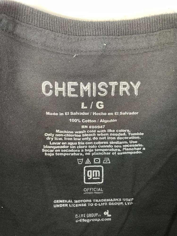 The clothes we are used to wearing are not so easy to produce and are not safe for nature. For example, to make one T-shirt, you need about 3 thousand liters of water and about 3 trees. By buying pre-owned clothes, you save nature for future generations. This is your contribution to nature conservation! You are bidding: CORVETTE TURBO 1981 - Chemistry Graphic T-Shirt Short Sleeve Black Size L Brand: Chemistry Style: Graphic T-Shirt Size type: Regular Size: L Color: Black Material: 100% Cotton Made in El Salvador C ondition: Pre owned. Item sold as pictured in auction. What you see in pictures is what you get. See the photos. Please read the description and view all photos before bidding. See my other lots. Thanks for looking. Box GOS-63A