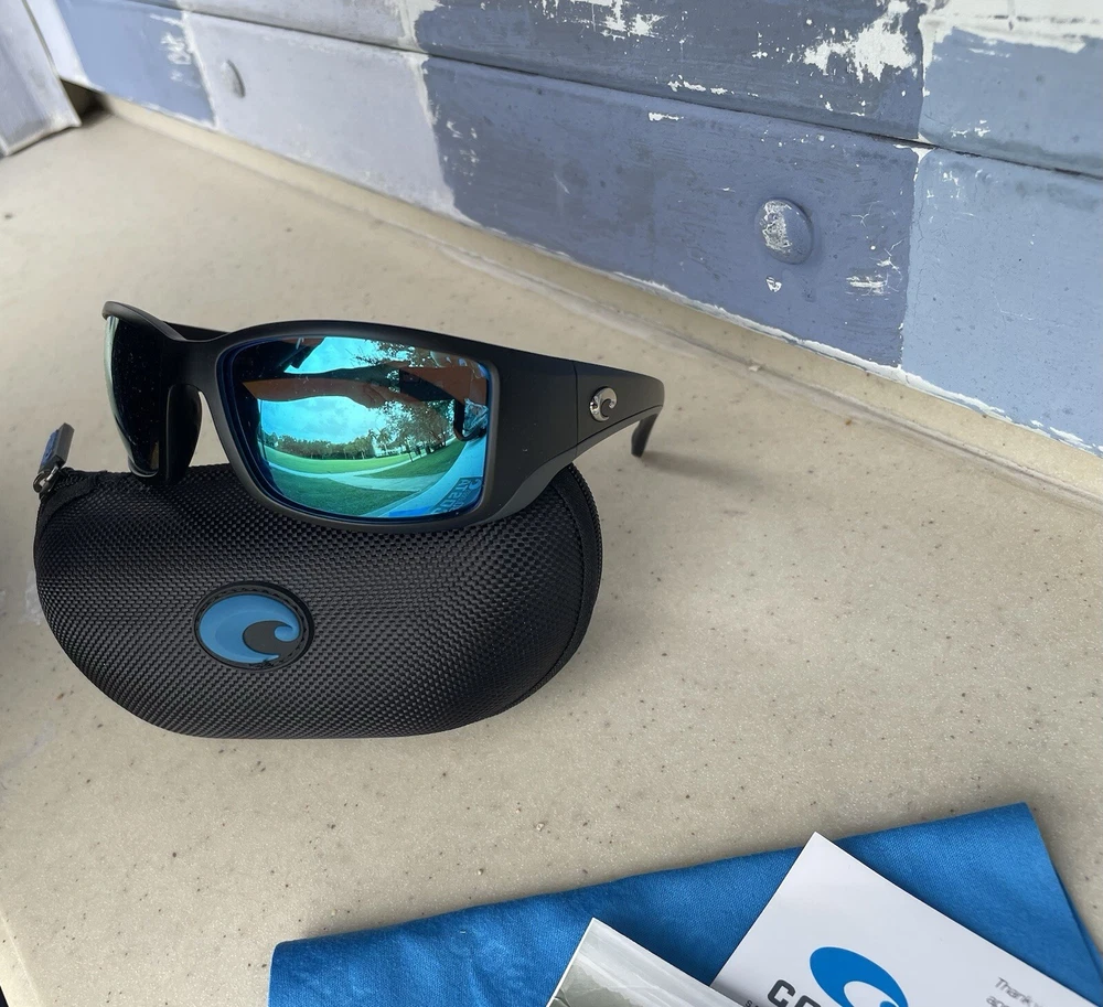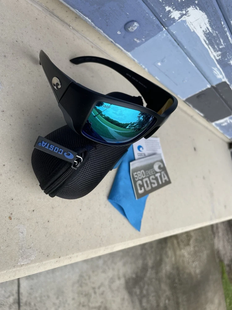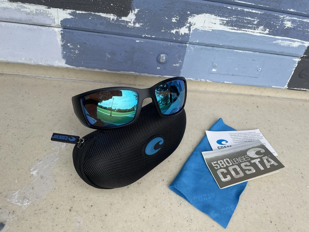 COSTA DEL MAR Blackfin POLARIZED Sunglasses Matte Black/Blue Mirror 580P NEW