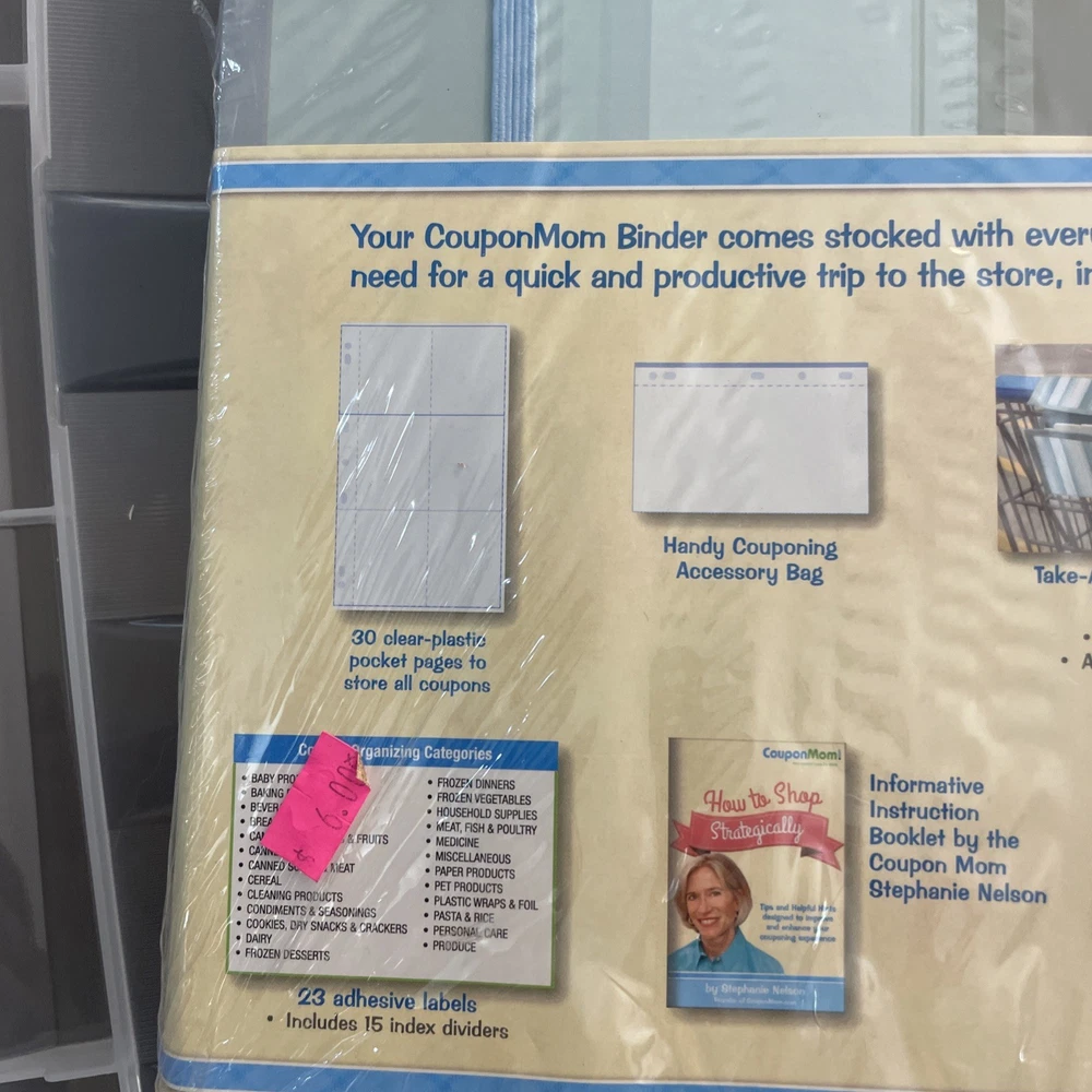 The Coupon Mom. Com Coupon Binder Set is a large-sized binder made of paperboard, perfect for organizing daily or monthly coupons. This new and sealed product is ideal for keeping track of your discount codes and offers in one convenient location, making it a valuable addition to any office or home supplies collection. With the brand's reputation for quality, you can trust that this planner and organizer will help you stay on top of your couponing game.
