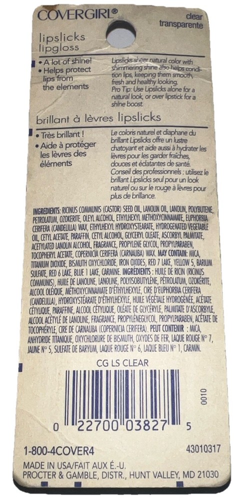 Covergirl Lipslicks Tinted Lip Balm two pk #105 CLEAR & 140 Hipster (New/Sealed/Discontinued)See Pics.