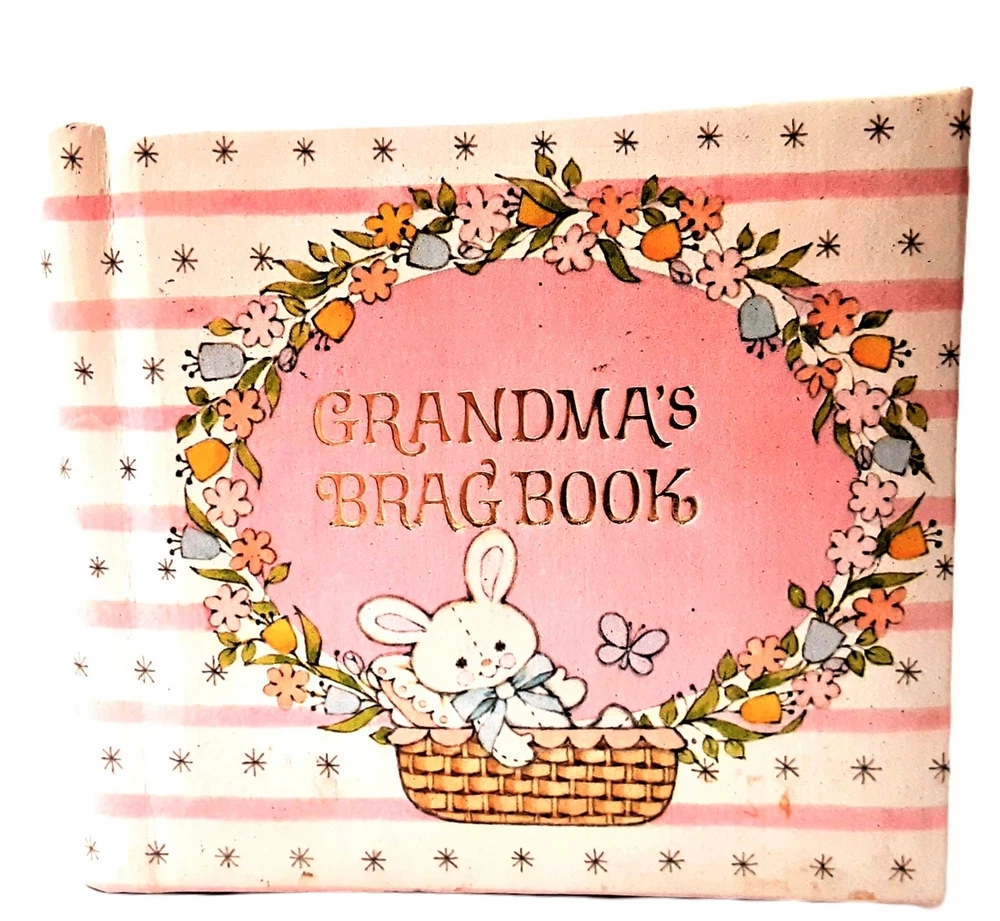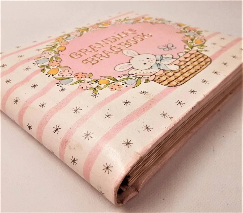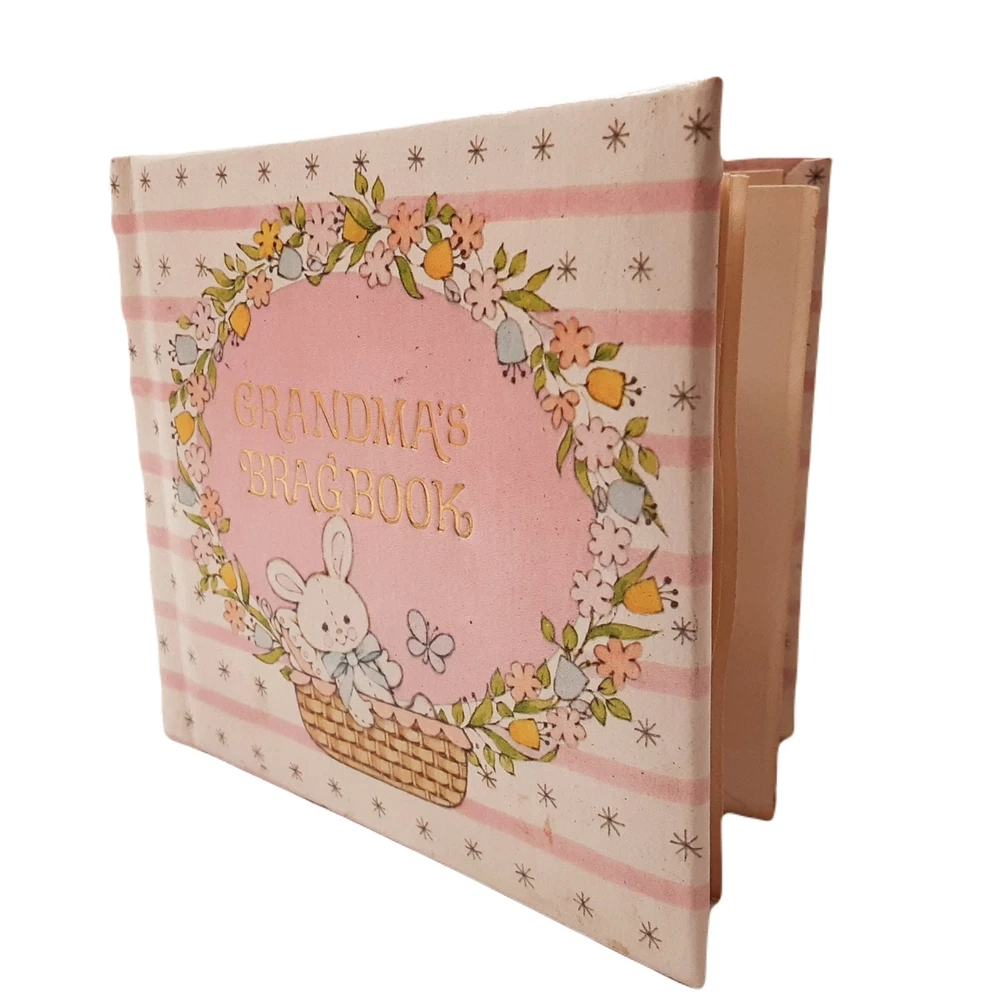 Vintage Grandma's Brag Book Small Photo Album C.R. Gibson Co. in Connecticut Vintage item circa 1960's/1970's Item is new and has never been used but does not come with tags or packaging Has 10 double sided plastic sleeves holding a total of 20 pictures Each sleeve measures approximately 3 1/2" x 3 1/2"; album measures 4 1/2" x 3 3/4" Compact size makes it perfect for carrying in a purse Some small areas of discoloration on cover and back; slight warping of interior pages Overall great condition with beautiful colors, crisp clean graphics, and a charming design Makes a great Mother's Day gift!