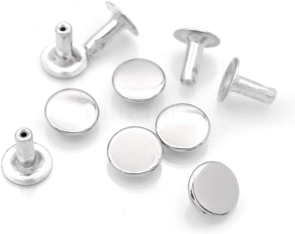 CRAFTMEMORE Flat Rivets Metal Single Cap Stud Round 9 mm, Silver Product Details Package Dimensions: 3.86 x 2.28 x 0.67 inches Item model number: CRAFTMEMORE Item Weight: 1.44 ounces Manufacturer: CRAFTMEMORE Product: Flat Head Single Cap Rivets / Leather Craft Rivets Cap Diameter: 7 mm, Post length 6 mm Cap Diameter: 9 mm, Post length 8 mm Quantity: 100 caps +100 posts Use: Bags, Belts, Wallet, Luggage, Garment, Briefcase, Lanyards, Etc.