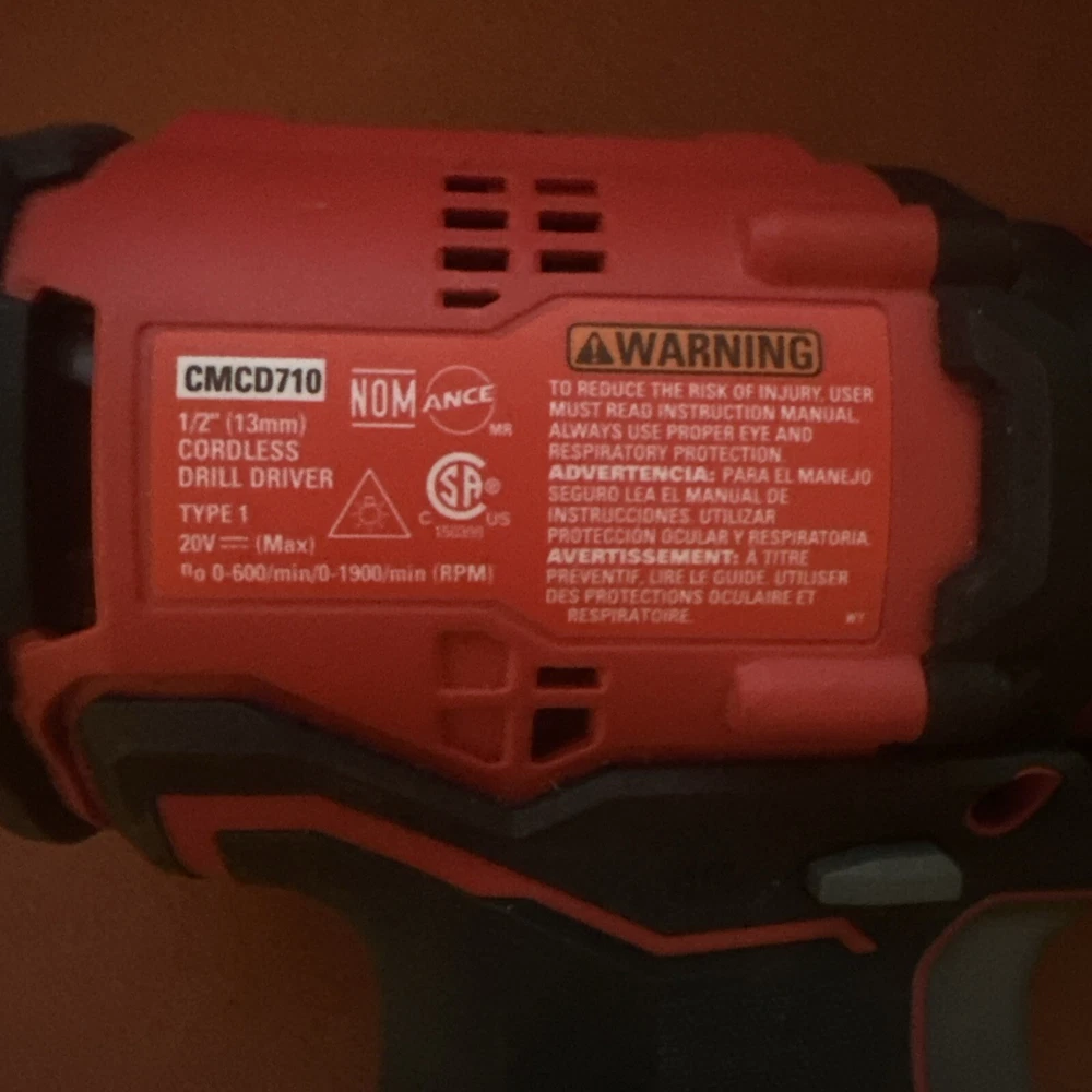 Brand: Craftsman Battery Included: No Chuck Size: 1/2" Speed: 1900 RPM Power Source: Battery Model: CMCD710 Voltage: 20 V Type: Drill Chuck Chuck Type: Keyless