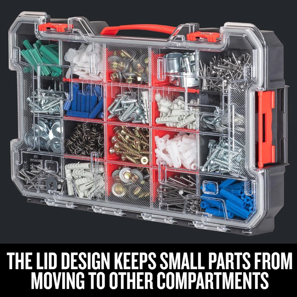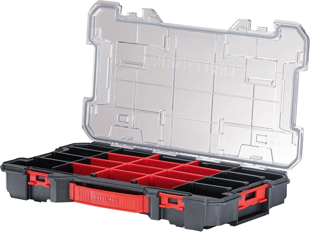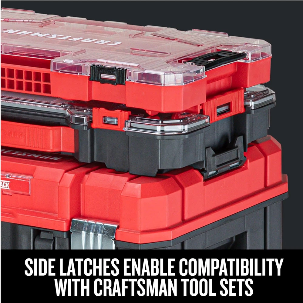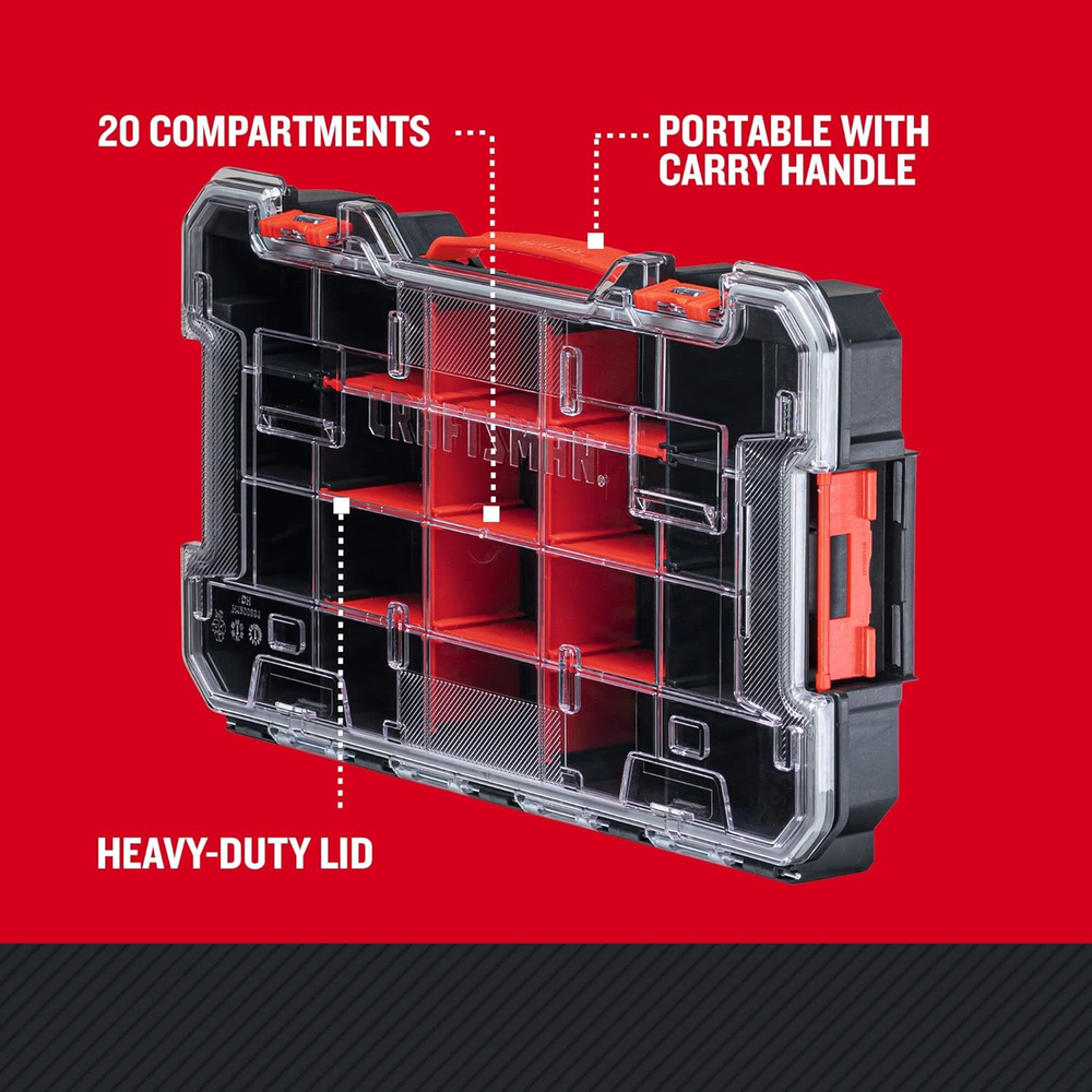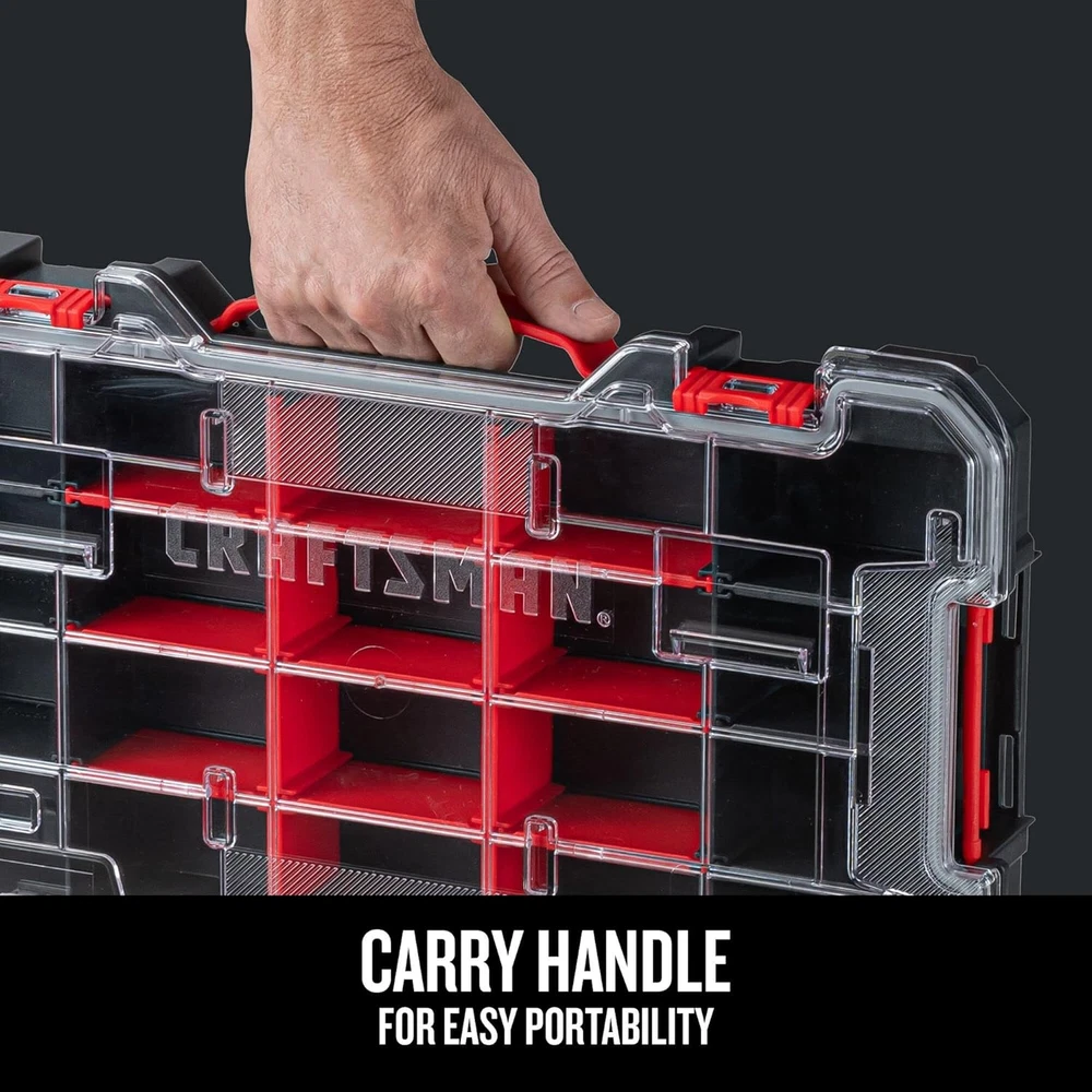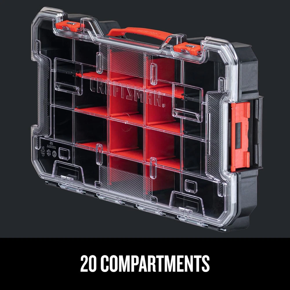 eBay CRAFTSMAN VERSASTACK Storage Organizer, Small Parts Organizer, 20-Compartments, Lid Includes Secure Latch (CMST17828) 20 Compartments IP54 Dust and Water Resistant Removable dividers for inner customization Heavy-duty transparent Polycarbonate lid Unique lid design keeps small parts from moving to other compartments Carry handle for easy portability Side latches enable connectivity with additional VERSASTACK modules Full compatibility with TRADESTACK using TRADESTACK Adaptor The CRAFTSMAN VERSASTACK 20-Compartment Organizer is a useful, easy to use organization solution. Removable dividers enable customizing the organizer for storing hand tools and small parts while the durable Polycarbonate durable lid keeps all parts in place. This organizer provides IP54 protection from dust and water and can be carried using its carry handle. The Organizer can be connected to any VERSASTACK module or CRAFTSMAN Large/Medium Tool Set and is compatible with the TRADESTACK family of products via the TRADESTACK Adaptor. Item model number CMST17828 Part Number CMST17828 Style Large Organizer Number of Compartments 20 Power Source NON-ENERGY USING Item Package Quantity 1 Color red Water Resistance Level Water Resistant Brand CRAFTSMAN Material Plastic Country of Origin USA Batteries Required? No Maximum Weight Recommendation 10 Pounds Item Weight 2.42 pounds Batteries Included? No Global Trade Identification Number 00076174834529 Manufacturer CRAFTSMAN Product Dimensions 17.16"L x 9.75"W x 2.73"H Included Components 1) Organizer Shipping Fast shipping is very important for us. Our standard US shipping service is FREE. Your order will be shipped within 2-3 business days upon full payment received. Your order will be delivered within 2-3 business days after the handling time. We only ship to the confirmed PayPal address. We reserve the right to cancel any order for any reason at any time. We are not responsible for undeliverable addresses. Returns and payment We offer a 30 days return policy from checkout winning date. We allow only PayPal as payment method FeedBack Your feedback very important to us, after you get your package and you are satisfied with our service please leave us positive feedback If you have any problem with your order / any questions please before leave any type of feedback For any questions, using eBay contact system Please visit our eBay store to check out other items for sale! Thank you for shopping at our store.