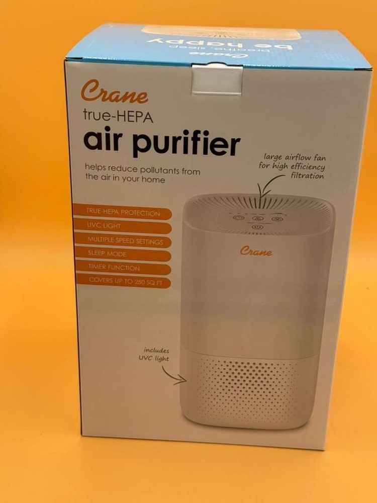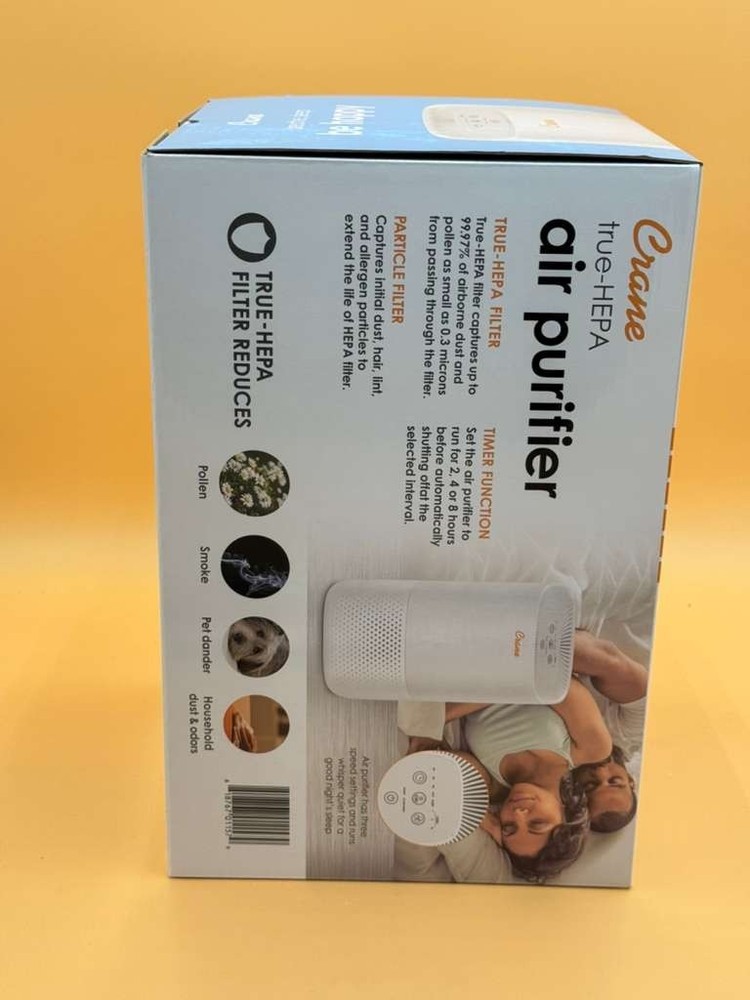 The CRANE EE-5067 True-Hepa Tower Air Purifier with Germicidal UV Light is a brand new product designed to effectively clean the air in any room. With a clean air delivery rating of 50, this air purifier utilizes true hepa filtration technology and a pre-filter to capture contaminants such as dust, allergens, mold, odors, and viruses. It features a timer, 3 different speeds, and is compatible with various smart home systems for added convenience. Additionally, it comes with a 1-year manufacturer warranty and is designed for floor or tower mounting.