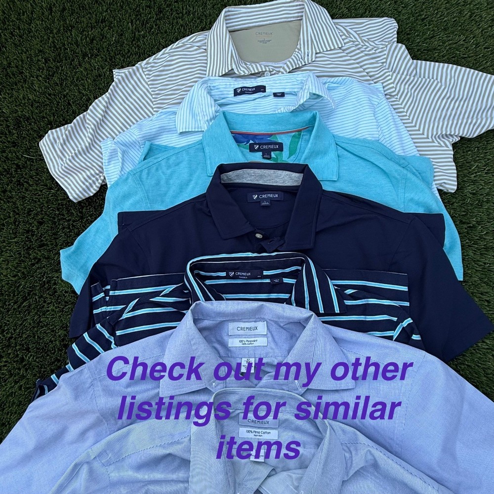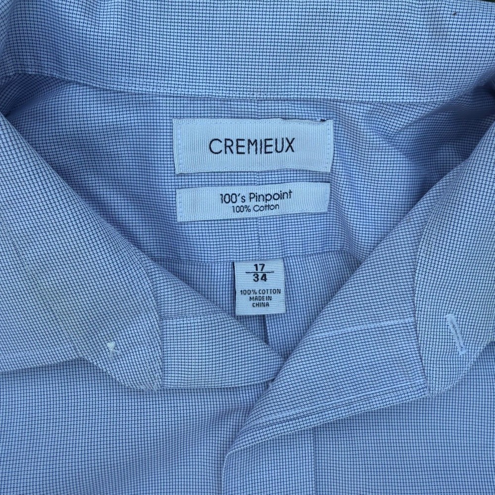 CREMIEUX 100s Pinpoint 100% Cotton dress shirt in light blue. This long-sleeve button-up shirt features a classic collar, a single chest pocket, and adjustable button cuffs. The pinpoint weave offers a subtle texture for a polished look. Measurements: • Neck: 17 in • Sleeve Length: 34 in Department: Men Neck Size: 17 in Fit: Classic Sleeve Length: Long Sleeve Type: Dress Shirt Pattern: Pinstripe Collar Style: Point Material: 100% Cotton Top Cuff Style: Barrel Cuff Features: Pockets Neckline: Collared Closure: Button Fabric Type: Woven Accents: Button Occasion: Business, Workwear Chest Size: 41 in Keywords: CREMIEUX, dress shirt, pinpoint, cotton, button-up, long sleeve, men's, business casual, workwear, classic, tailored Item is preowned, effort has been made to ensure all flaws are displayed photos serve as additional description Sizing varies by manufacturer and time period, please see measurements.