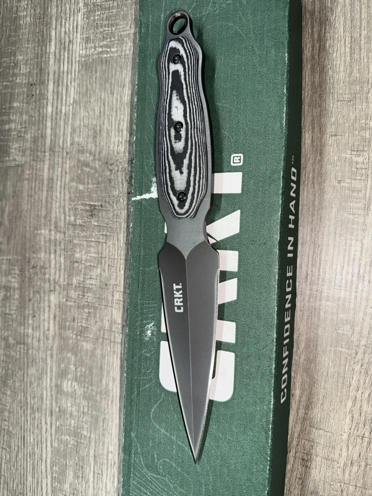 The CRKT Shrill Dagger Knife features a full tang construction with a spear point blade made of stainless steel. It has a blade length of 4 inches with a plain edge and a dual edge design. The handle is made of Micarta, and the knife includes a leather clip sheath with a lanyard hole. This versatile knife is suitable for hunting, everyday carry, combat, throwing, boot, and survival purposes, and is designed for ambidextrous use.