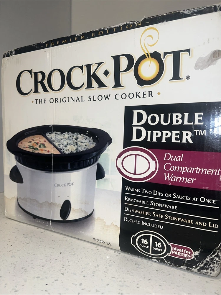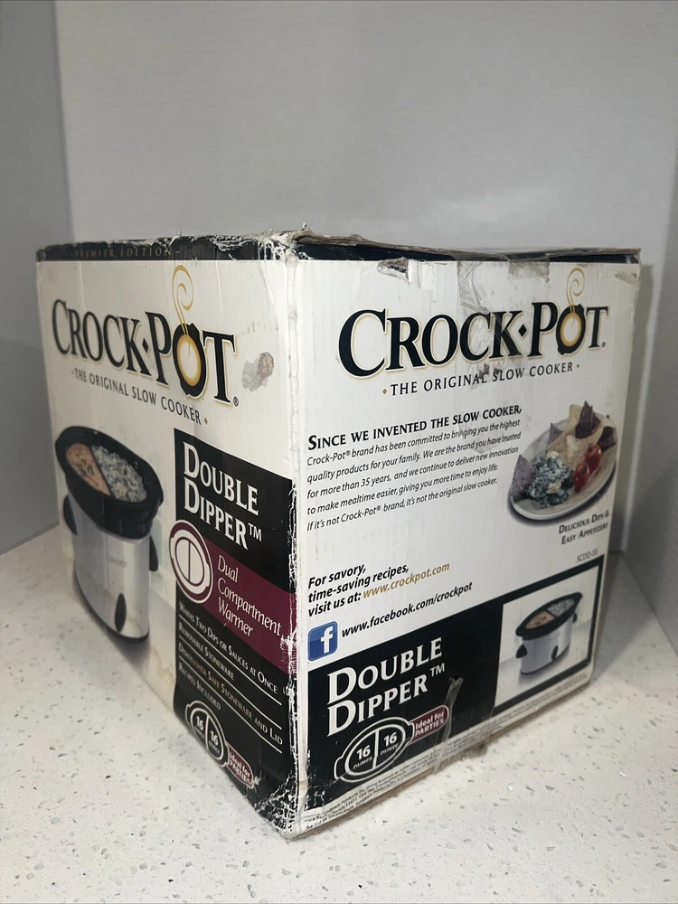 New never been used. Box just has wear and tear throughout time. Stainless steel slow cooker ideal for parties.