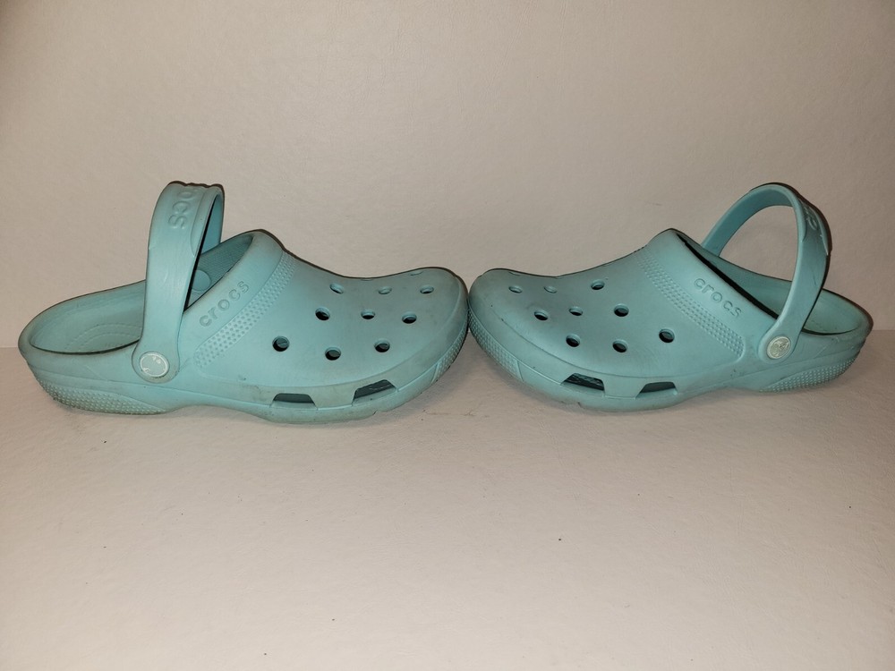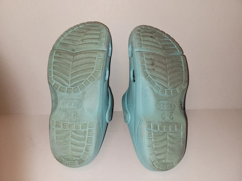 This product is a pair of pre-owned Crocs sandals in blue, designed for both men and women in size 7 and 9 respectively. Made of rubber, these slip-on sandals offer comfort and style with their simple design. Perfect for casual wear and easy to put on, these Crocs are a versatile option for everyday footwear. We are a growing business and feedback from our customers means the world to us! If you have any question about an item, your order, etc, please do not hesitate to send us a message If your experience with us was not satisfactory, please contact us prior to leaving feedback so we can try to resolve your issue Our goal is to make your experience with us a good one!