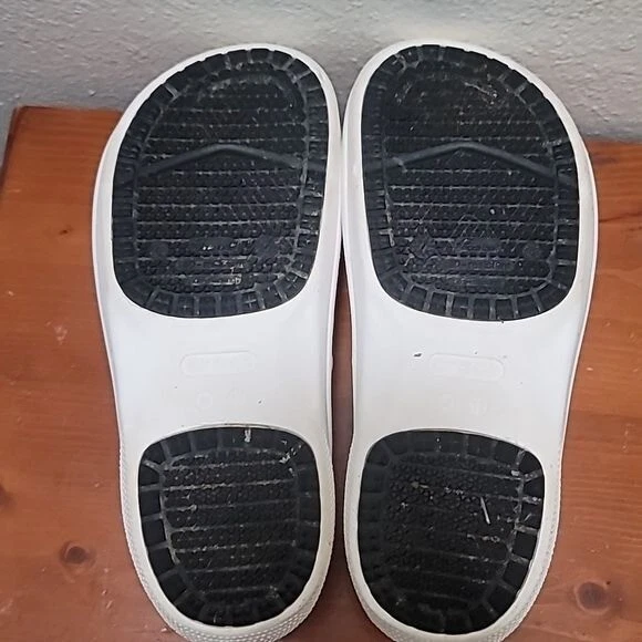 use crocs rubber dual comfort lock slip on slip resistant clog white men's shoes minor wear excellent condition see photo for details