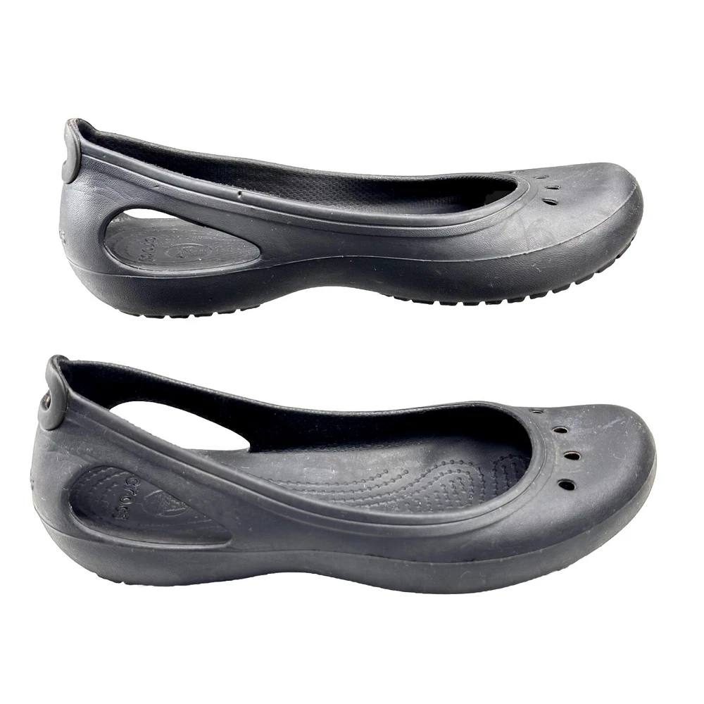 The Crocs Kadee Ballet Flats in size 7 are versatile black slip-on shoes designed for everyday comfort. These casual flats feature a solid pattern with a flat heel style, making them suitable for various occasions. Made by the brand Crocs, known for their lightweight and cushioned footwear, the Kadee flats are crafted from rubber material for breathability and comfort. Perfect for summer, fall, and spring seasons, these classic slip-ons are a stylish choice for women seeking a durable and easy-to-wear shoe option. Great pre-owned condition with minimal use. ⭐Smoke and pet-free ⭐Examine photos carefully as they are part of the description. ⭐If you need more measurements or images, do not hesitate to contact us. ⭐Ships quickly - same or next business day!