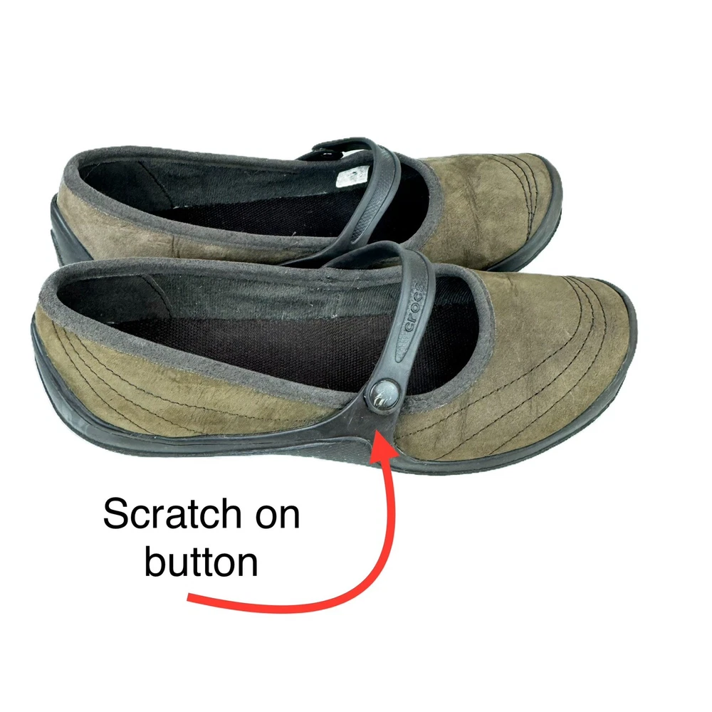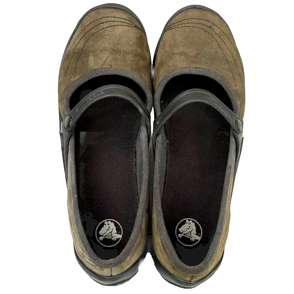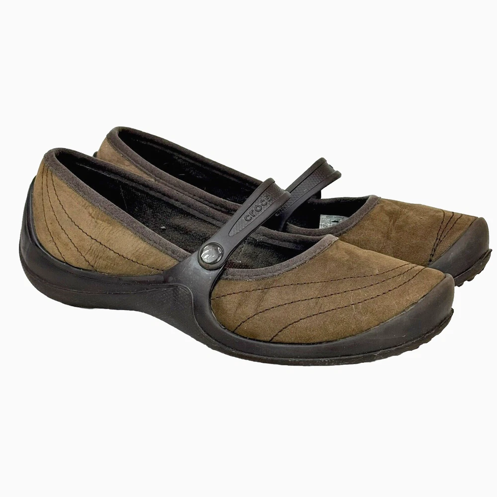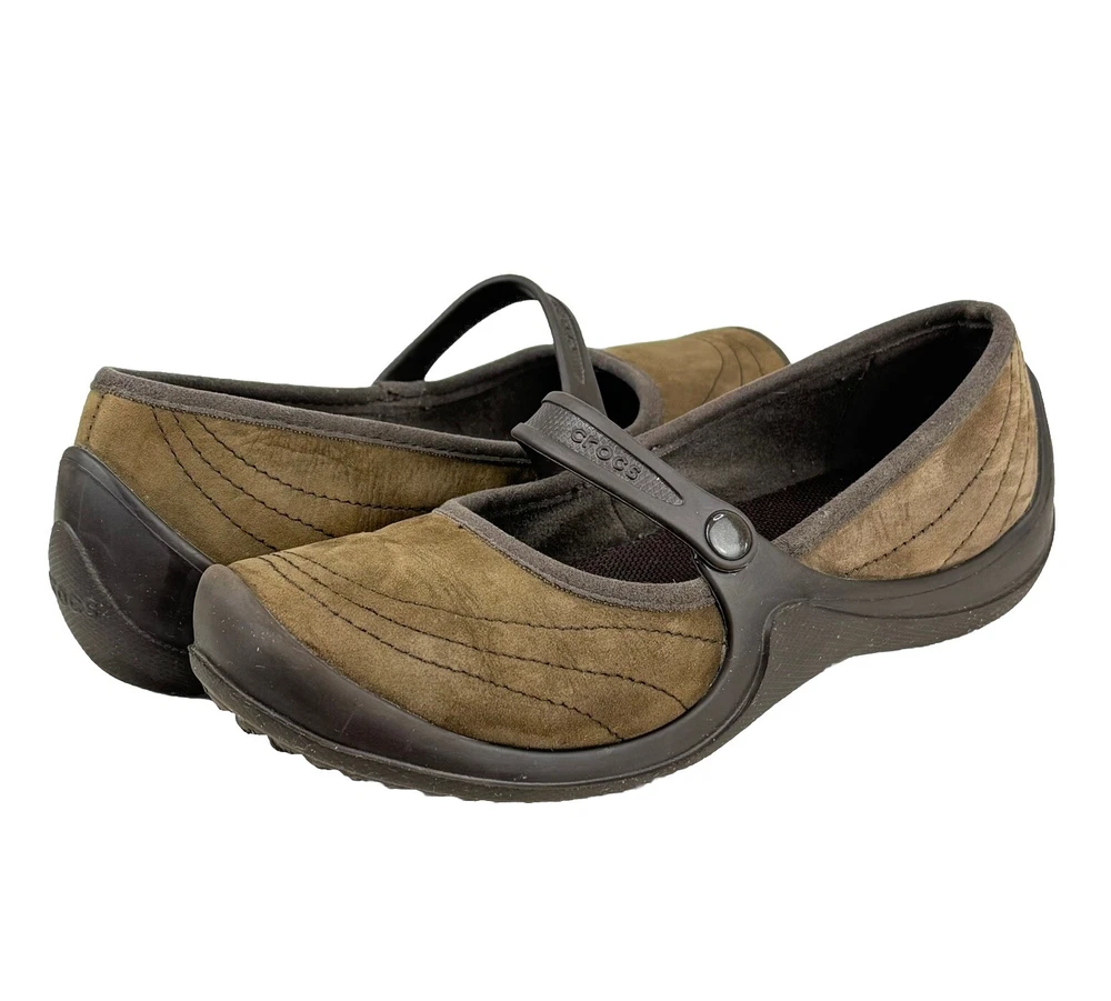 CROCS 10889 Wrapped Wedge Brown Nubuck Leather Mary Jane Shoe Slip Ons Women's Size 8 Great preowned condition. Scratched area on shoe button detail noted in photo. Color tones may vary depending on your monitor/device settings. Some photos may have been lightened to show detail. ⭐Smoke and pet-free ⭐Examine photos carefully as they are part of the description. ⭐Compare measurements with a similar piece of clothing you own that fits you well. ⭐If you need more measurements or images, do not hesitate to contact us. ⭐Ships quickly - same or next business day! Returns policy: If you receive your item and it doesn't fit, or is not what you wanted, all we ask is that you return it within 30 days, in the condition we sent it to you in. Please be aware that buyer pays for return shipping. If the item is new with tags, please do not wash or remove the tags. Store tags must be attached for a return. If they are not attached when returned, this will result in less than a full refund. Thank You! 😊