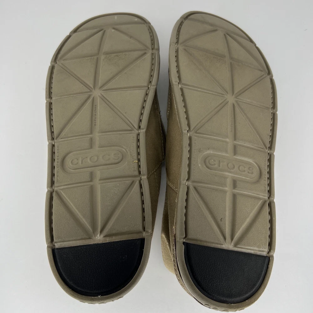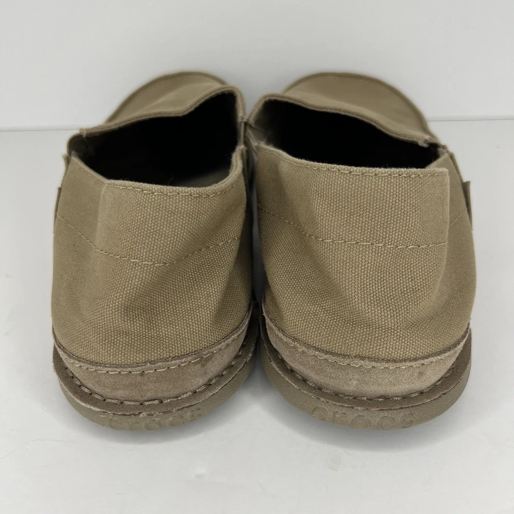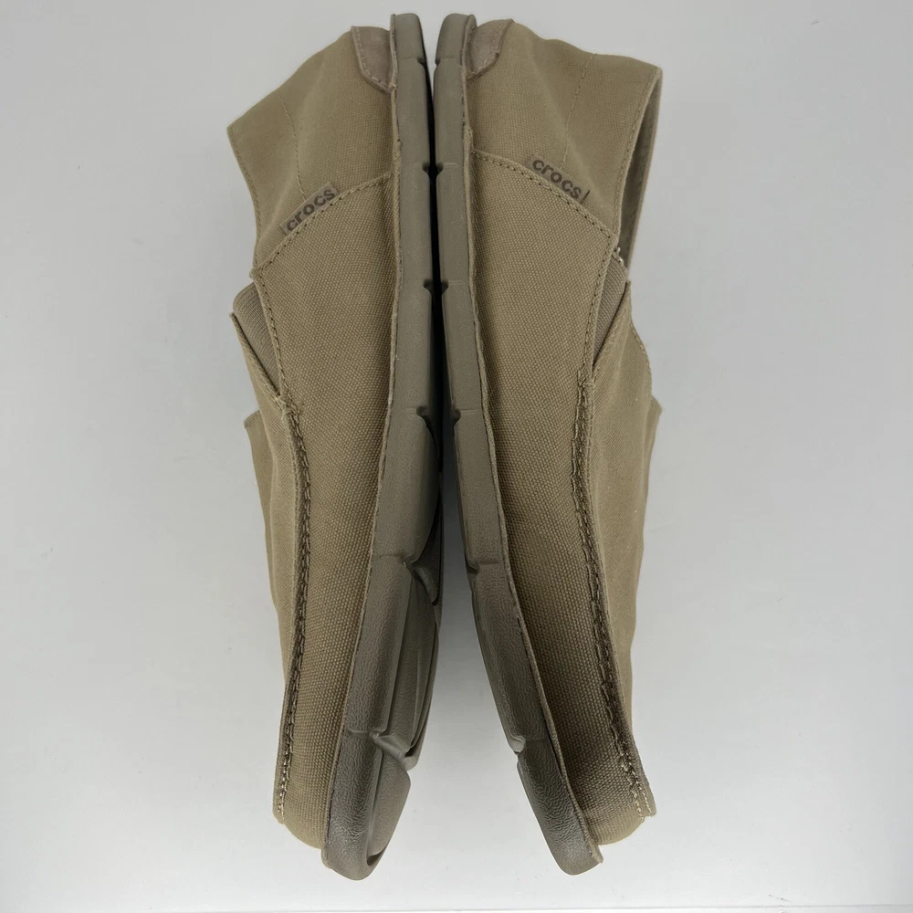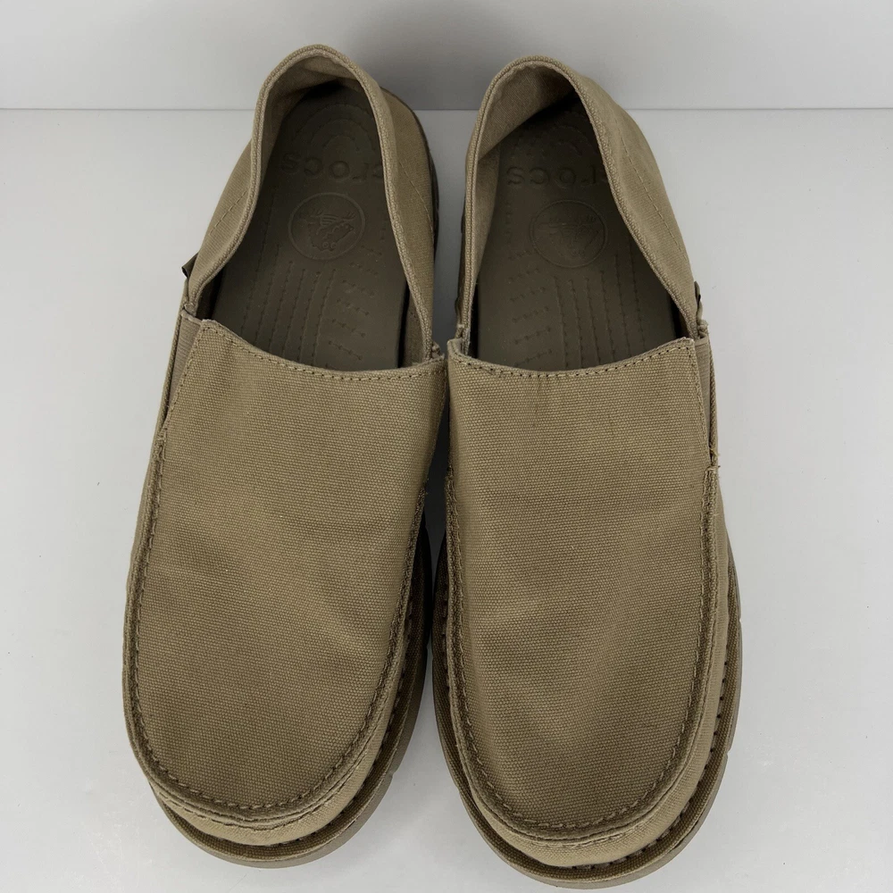 Elevate your casual style with these Crocs Santa Cruz II Luxe Slip On loafers . The shoes come in a charming tan beige color and have a solid pattern with round toe shape. They are made with lightweight canvas fabric, which makes it perfect for travel and everyday wear in summer, fall, and spring seasons. Slip-on closure provides easy wear, while the rubber outsole ensures durability and comfort. These men's loafers are part of the Santa Cruz product line and feature the brand's logo as an accent. The shoes have a comfortable M shoe width and come in size 12. The canvas upper material and rubber insole material make these loafers ideal for long walks, casual outings, or any occasion. Get your hands on these Crocs Santa Cruz II Luxe Slip On loafers and take your style to the next level. 100% CUSTOMER SATISFACTION IS OUR GOAL! Our items are always carefully examined for condition, measured if necessary, and photographed in a climate controlled and smoke-free environment. We make every attempt to accurately describe and clearly picture the items we have for sale. Please, ALWAYS view all of the photos. We value your business and our goal is your complete satisfaction. FAST SHIPPING All items are packaged with care and shipped out the same or next business day via USPS, FEDEX, or UPS with tracking numbers so you are always informed. RETURNS We offer a 30-day return policy. All items must be unused and unopened in the condition in which they were received, with original packaging, and all accessories included for return. REVIEWS - CUSTOMER SATISFACTION - COMMUNICATION We aim to make you happy. After you receive your shipment, please leave a positive review . If you have concerns or questions about your order, please contact us so we can resolve the issue. We will do our best to make you satisfied. THANK YOU FOR YOUR BUSINESS!