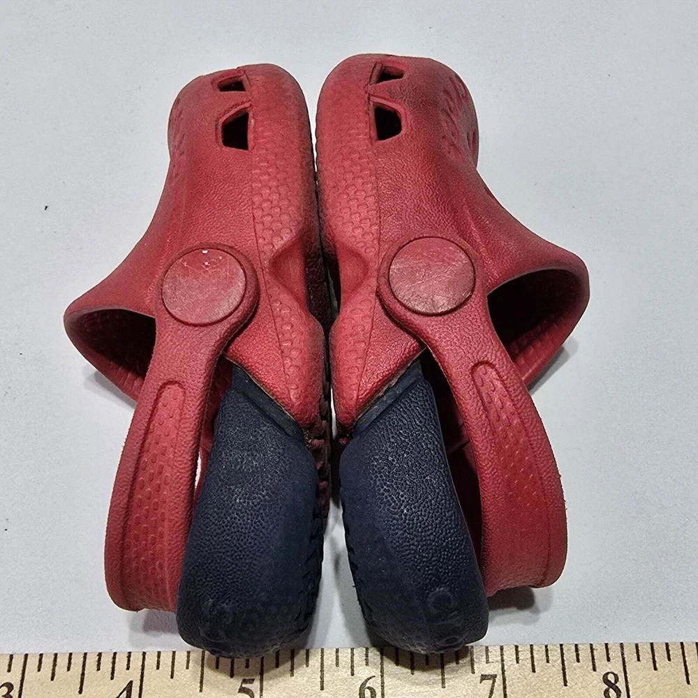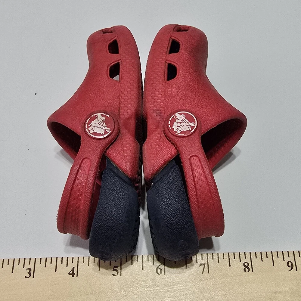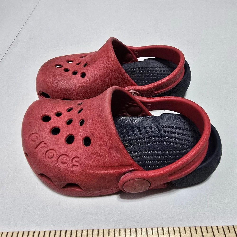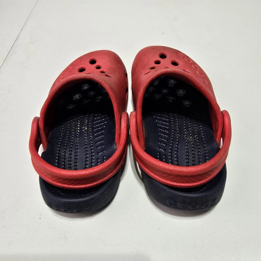 These Crocs slip-on clogs are perfect for your little one's casual summer, fall, or spring outings. The colorful red and blue design adds a fun touch to any outfit, while the rubber upper material ensures durability and comfort. These shoes are easy to slip on and off, making them convenient for busy parents and toddlers alike. The clogs come in a size 5C and are part of the Crocs brand, known for their quality and comfort. Whether your baby is playing outside or going to a park, these shoes are a great choice. Made in Mexico, they are a unique addition to your child's shoe collection.