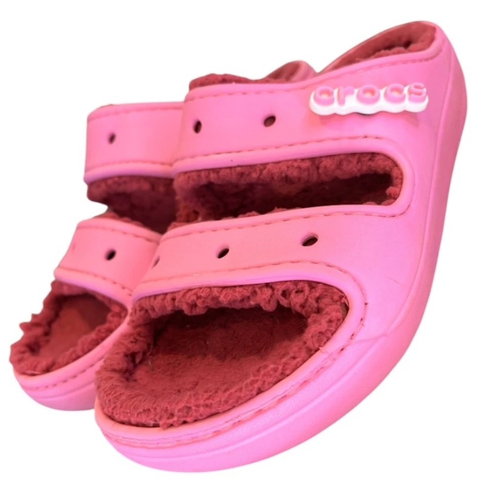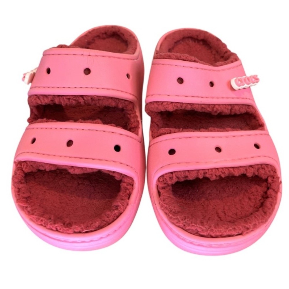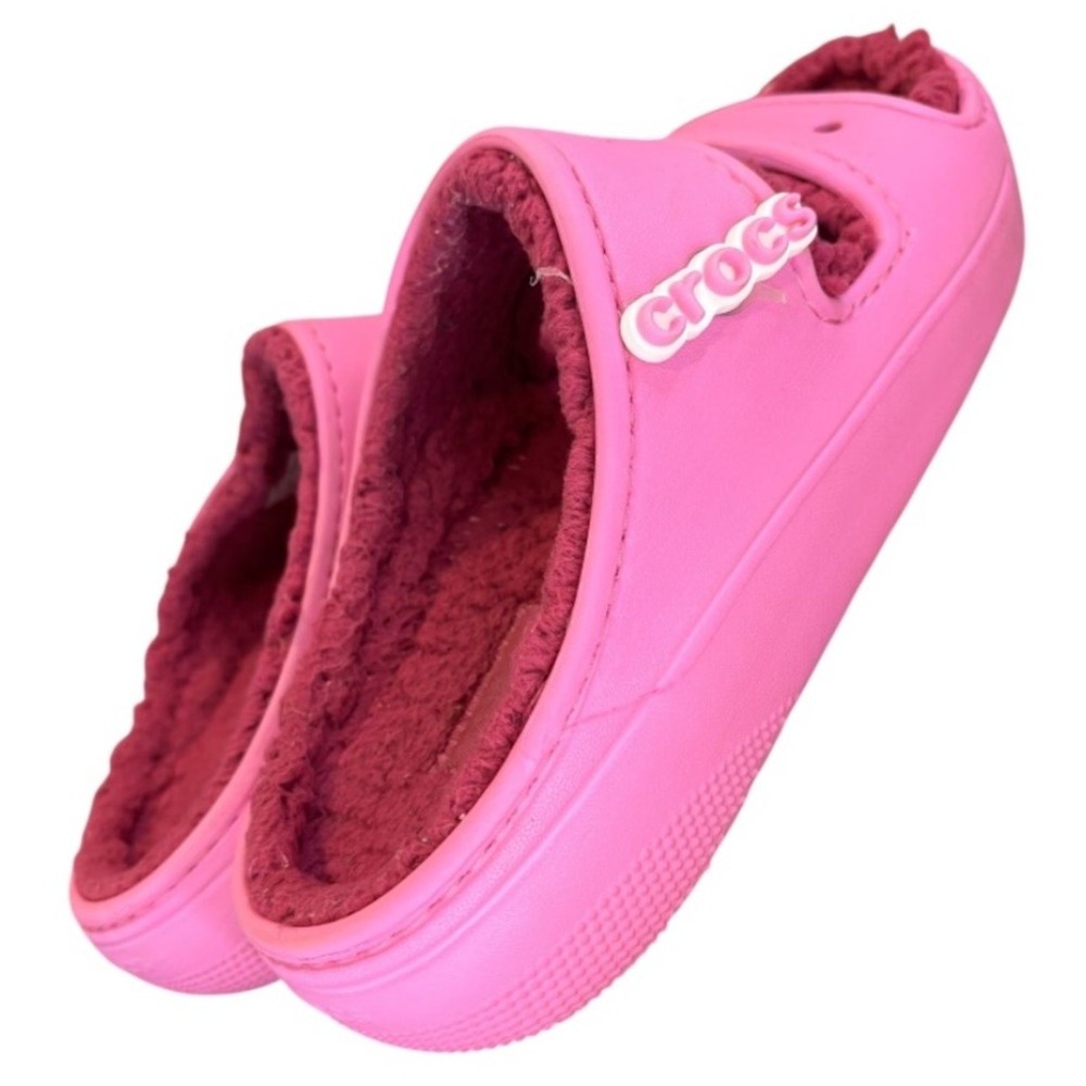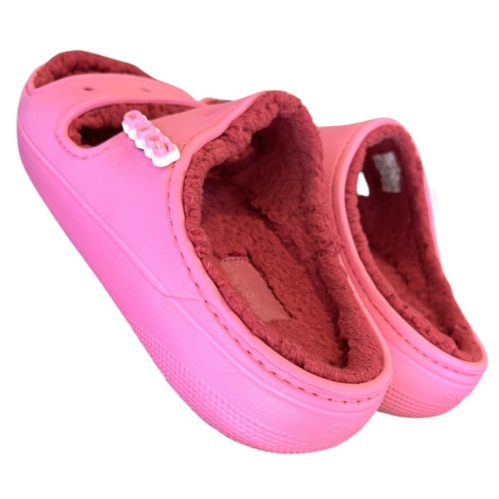 CROCS Unisex Adult Classic Pink Cozy Fuzzy Taffy Pink Slippers M4 W6