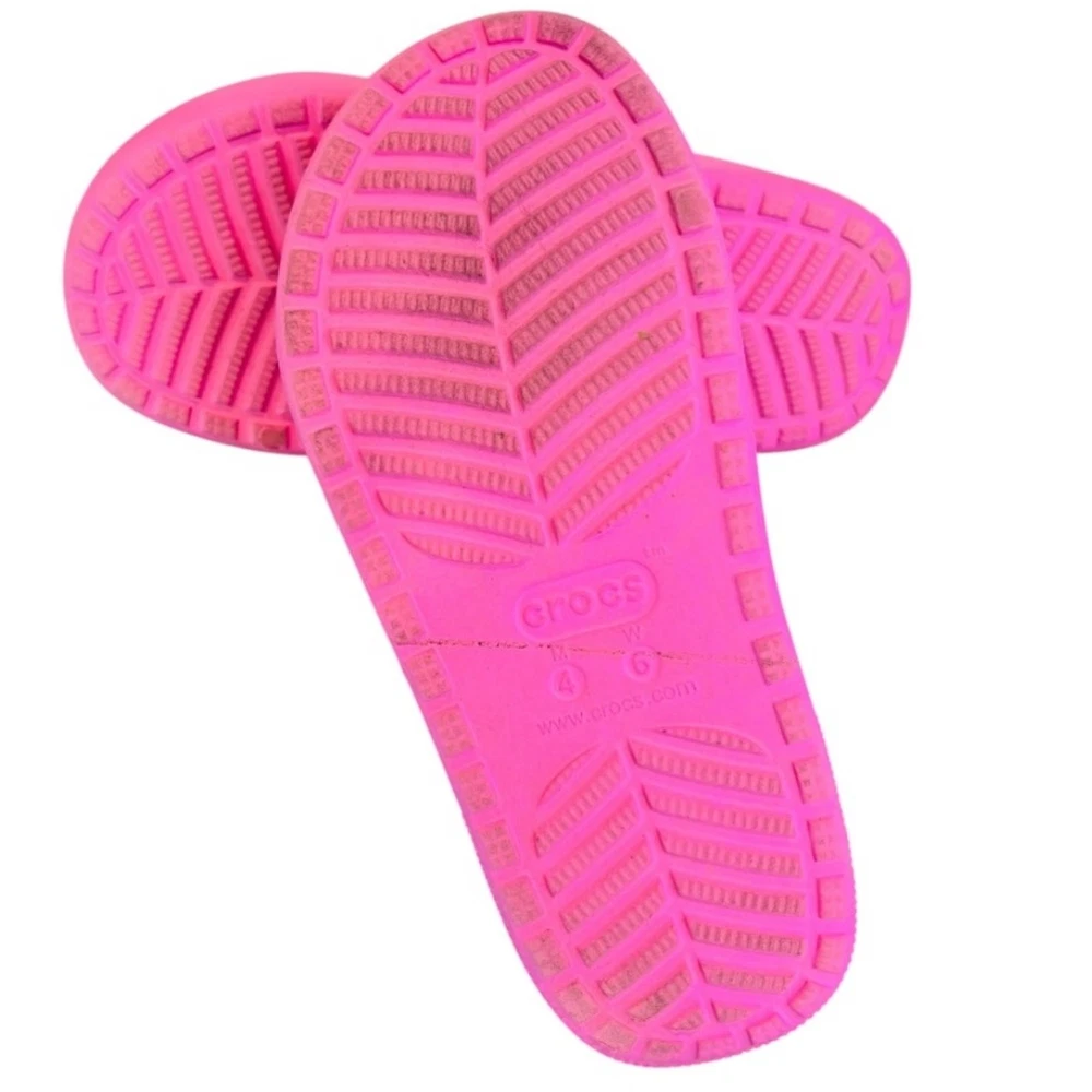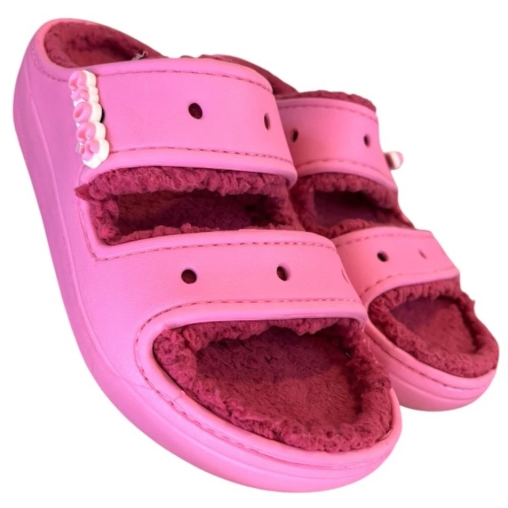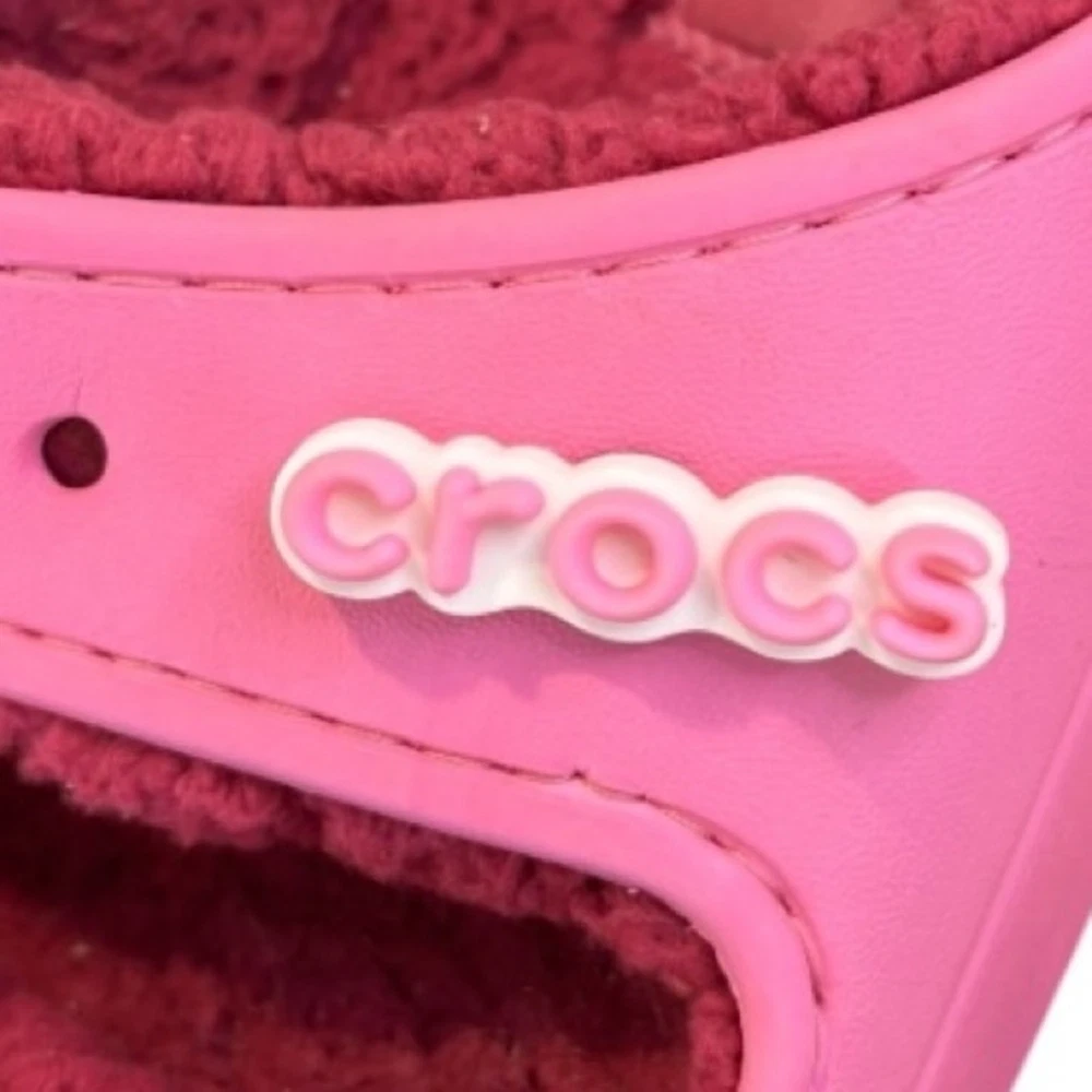 Soft taffy pink colorway cozy unisex adult two strap slippers by CROCS. Warm and comfy. Perfect for indoor or outdoor play. These CROCS are a limited edition collaboration with the artist Saweetie. M4 W6