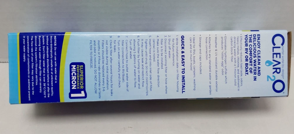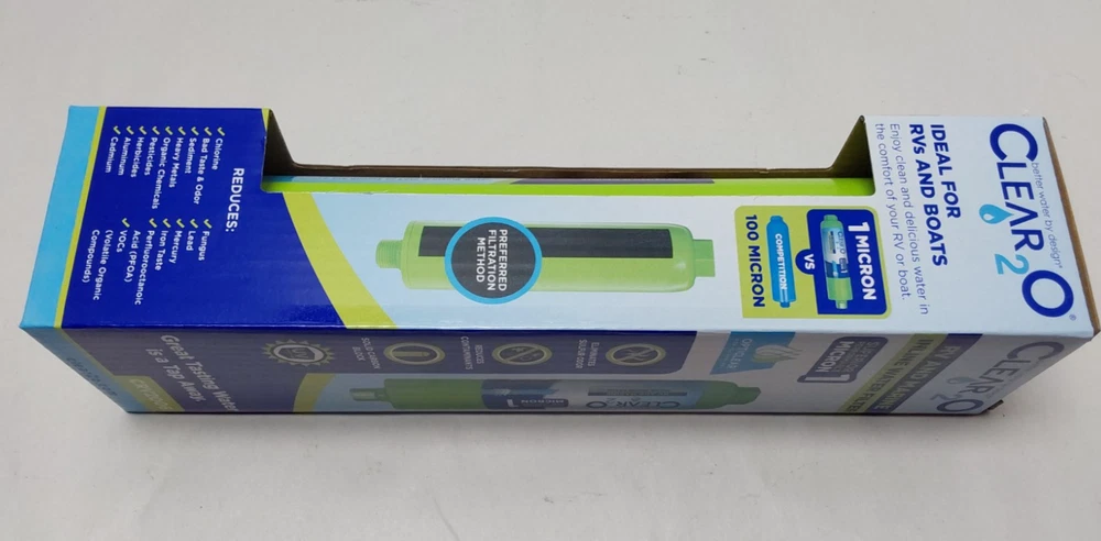 ~*** CLEAR 2o ***~ CRV2006 RV AND MARINE INLINE WATER FILTER OPTICLEAR SCB TECHNOLOGY IDEAL FOR RVS AND BOATS SOLID CARBON BLOCK FILTRATION THIS ITEM IS BRAND NEW ~ FACTORY SEALED AND SHIPS FROM UNITED STATES