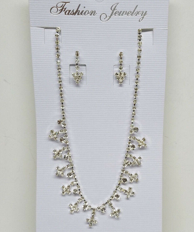 BRAND NEW WOMEN'S FASHION JEWELRY SET. Beautifully Designed Silver Necklace & Stud Earrings laced with Sparkling Rhinestone Crystals. Necklace adjustable 16''-18'' with Lobster Clasp. Great for that special occasion - Wedding, Bridal, Prom, Sweet 16, Parties, etc. Nice Quality Item / Well Crafted / GREAT Price Please check my auctions for more Fashion Jewelry. Super low prices - make great gifts. PLEASE TAKE A MOMENT TO VIEW OUR OTHER LISTINGS AND VISIT OUR STORE FOR A LARGE SELECTION OF ADDITIONAL ITEMS ALWAYS FEEL FREE TO CONTACT US WITH ANY QUESTIONS YOU MAY HAVE Item will ship by USPS First Class Mail w/ tracking #. >>USA SELLER<<  with fast same day shipping (Monday - Saturday) if paid by 5pm Eastern Time. We combine shipping for multiple purchases. Buyer is charged shipping on the item with the highest shipping cost, all additional items ship for free. If shipping outside the USA, buyer must use the "eBay Global Shipping Program".