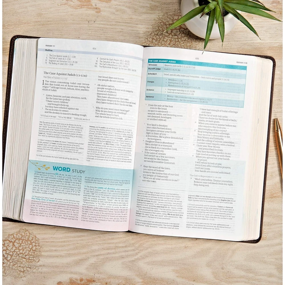 This Bible is absolutely stunning! The Chocolate LeatherTouch feels luxurious and durable, making it a joy to hold. The study notes by Rhonda Harrington Kelley are insightful and tailored for women, deepening my faith journey. Shipping was incredibly fast—arrived in just a couple of days—and the customer service was top-notch. Highly recommend for anyone looking for a meaningful, well-crafted study Bible!