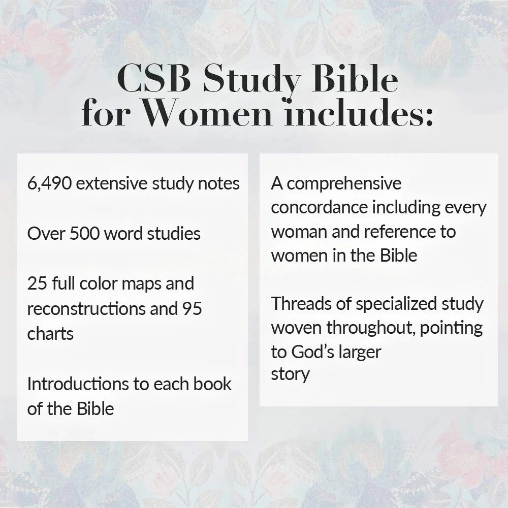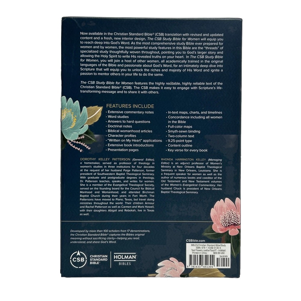 Fast Shipping Great Customer Support Satisfaction Guaranteed DESCRIPTION Shipping Shipping Shipping All domestic packages are shipped for Free (Unless other shipping method was selected during the checkout) Most items ship and arrive much sooner than the estimate delivery date. Usually within 2-3 days from payment. However, we have longer estimates to compensate for the occasional delay or supply chain breakdown. We do not accept P.O. BOXES - PLEASE PROVIDE A PHYSICAL ADDRESS Return Return Return In the event that you would like to return your purchase, we allow returns that are processed within the defined return date (the return date is to be found in the return policy/shipping and handling section) Please contact us for a return authorization and the return shipping address. Payment Payment Payment PayPal is our preferred method of payments it's the quickest, easiest and most secure way to pay for your goods or services online. PayPal offers buyer and seller protection should there be a problem. If you do not have a PayPal account, to get started and buy your first item with us is very easy. Simply click on the 'Buy It Now' button and follow the eBay checkout steps. Select PayPal as the payment method you then will be given the chance to enter your card details in to PayPal's secure checkout in order to pay for your order. Once the payment has been made, you will then be given the opportunity to make your own PayPal account to make paying for your items in the future very easy. Should there be a problem with payment please do let us know. Feedback Feedback Feedback Customer satisfaction is very important to us. If you have any problem with your order,please contact us and we will do our best to make you satisfied, please do not leave a negative feedback before we resolve your problem. We guarantee that your issue will be solved quickly. As long as you are happy with your purchase of , please leave us a positive feedback. Your feedback is very important to us it affects our search placement on eBay. We will leave a positive feedback for you in return automatically once we receive your feedback. Contact Us Contact Us Contact Us If you have any queries, please contact us via ebay. We usually respond within 24 hours on weekdays. Thank you for visiting our ebay store! The CSB Study Bible for Women is the most comprehensive study Bible ever prepared for women and by women. Featuring extensive study notes and helpful articles by women academically trained in the original biblical languages. Each of the features is crafted to equip you to dig deeper into Scripture and mentor others in your life to do the same. Now available in the Christian Standard Bible (CSB) translation with revised and updated content as well as a beautiful new interior design throughout. The CSB Study Bible for Women features the highly readable, highly reliable text of the Christian Standard Bible (CSB). The CSB stays as literal as possible to the Bible’s original meaning without sacrificing clarity, making it easier to engage with Scripture’s life-transforming message and to share it with others. Discover meaningful gifts for Christmas at the Lifeway Brand Store. General Editor: Dorothy Kelley Patterson is a professor of Theology in Women’s Studies. She is a homemaker, popular speaker, and successful writer, editor, and compiler of numerous books as well as the coeditor of the Old Testament and New Testament volumes of the Women’s Evangelical Commentary. Managing Editor: Rhonda Harrington Kelley is an adjunct professor of Women’s Ministry. She is a frequent speaker for women as well as the author of numerous books and coeditor of the Old Testament and New Testament volumes of the Women’s Evangelical Commentary. CSB Study Bible for Women, Chocolate LeatherTouch, Full-Color Maps Click here to see description Fast Shipping Great Customer Support Satisfaction Guaranteed DESCRIPTION Shipping All domestic packages are shipped for Free (Unless other shipping method was selected during the checkout) We ship within two business days of payment, usually sooner Standard FREE shipping takes between 3-5 business days Expedited shipping takes between 2-3 business days Overnight shipping takes between 1-2 business days We do not accept P.O. BOXES - PLEASE PROVIDE A PHYSICAL ADDRESS We Ship Globally using ebay's GSP, the item is sent to a logistic center in KY and shipped from there to the rest of the world. International customers are responsible for all duties and taxes Contact your local authority for questions related to the amount of duties or taxes you will be responsible for Return In the event that you would like to return your purchase, we allow returns that are processed within the defined return date (the return date is to be found in the return policy/shipping and handling section) Please contact us for a return authorization and the return shipping address. Please contact us for a Return Merchandise Authorization (RMA) number. We advise you to use a reputable carrier service when returning your goods. Please pack all returns appropriately. We ship globally Via eBay's global shipping program (GSP). Thus we don't cover returns for items shipped globally. Buyers returning such items will be refunded ONLY for the item's cost and not for the shipping. please check the Voltage information and make sure it matches the one in your country. In case it's not stated in the description, do ask us. Payment PayPal is our preferred method of payments it's the quickest, easiest and most secure way to pay for your goods or services online. PayPal offers buyer and seller protection should there be a problem. If you do not have a PayPal account, to get started and buy your first item with us is very easy. Simply click on the 'Buy It Now' button and follow the eBay checkout steps. Select PayPal as the payment method you then will be given the chance to enter your card details in to PayPal's secure checkout in order to pay for you