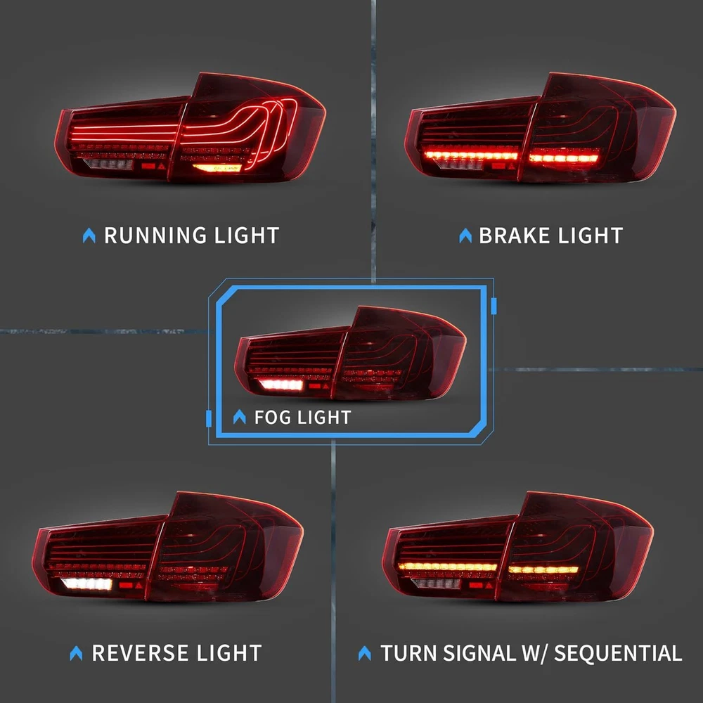 CSL LED Red Tail lights Assembly Fit for 2012-19 BMW 3 Series 6th Gen F30 M3 F80 Fitment: BMW 3 Series 2012-2018 F30 330D / 335D XDrive BMW 3 Series 2012-2018 F30 F35 F80 318d / 318d x-drive / 320d x-drive 320i x-drive / 325d / 330d / 330d x-drive / 330i x-drive / 335i / 335i drive / 340i / 340i drive / Concours M3 BMW 3 Series 2012-18 F30 F80 316d / 316i / 318d / 320d / 320d x-drive / 320i / 335i / 335i x-drive / ActiveHybrid Not Fit For : BMW 3 Series Touring F30 BMW 3 Series Touring F31 BMW 3 Series Gran Turismo F34 BMW 3 Series Touring F31 BMW 3 Series Coupe E92 Item Features: Lens Color: Red Running Light: LED (Red) Brake Light: LED (Red) Reverse Light: LED (Diamond White) Turn Signals: LED (Amber. With Sequential Indicators) Start-up Animation:With Start-up Animation Certification: E-Mark Description: 1 pair of taillights with left side & right side. This item has the same connections and wires with the original tail lights. It is easy to installing (Professional installation recommended). Warranty: One Year You May Also Like: 👇 SPECIFIC SHIPPING ABOUT PAYMENT RETURN SPECIFIC SHIPPING ABOUT PAYMENT RETURN VLAND Headlights VLAND Tail Lights VLAND Combination Set VLAND Bulbs For Chevrolet For Dodge For Ford For Honda For Mitsubishi For Hyundai For Lexus For Toyota For BMW For GMC For Volkswagen For Tesla For Subaru Other On Dec 31, 2024 at 10:47:32 PST, seller added the following information:
