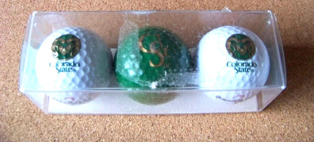CSU Colorado State University 3 pack golf balls Rams Pro-Grade 1 green white 2 white golf balls with the Rams logo and Colorado State, one green golf ball with CSU logo design . Package appears to be new, unopened and the balls unused. Don’t forget to click on my "Stores" link, next to my eBay name, to see other items I currently have listed for sale, or you can copy and paste this address into your browser: stores.ebay.com/highcountrycollectibles SHIPPING INFORMATION Shipping to U.S. addresses is FREE! HIGH COUNTRY COLLECTIBLES Since 1989 – A LEADER IN THE DENVER SPORTS MEMORABILIA MARKET. Check out my other auctions and listings, and keep an eye out for the different, unusual, and EXCLUSIVE items available nowhere else but from High Country Collectibles.