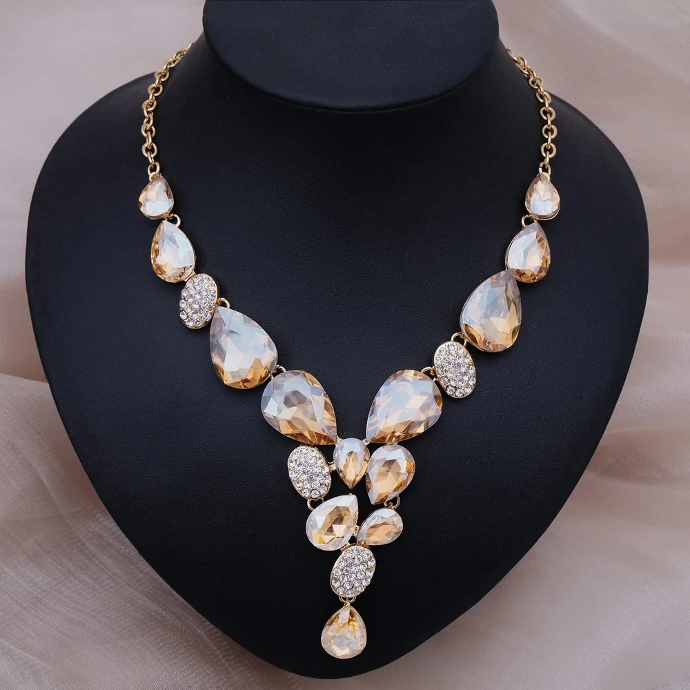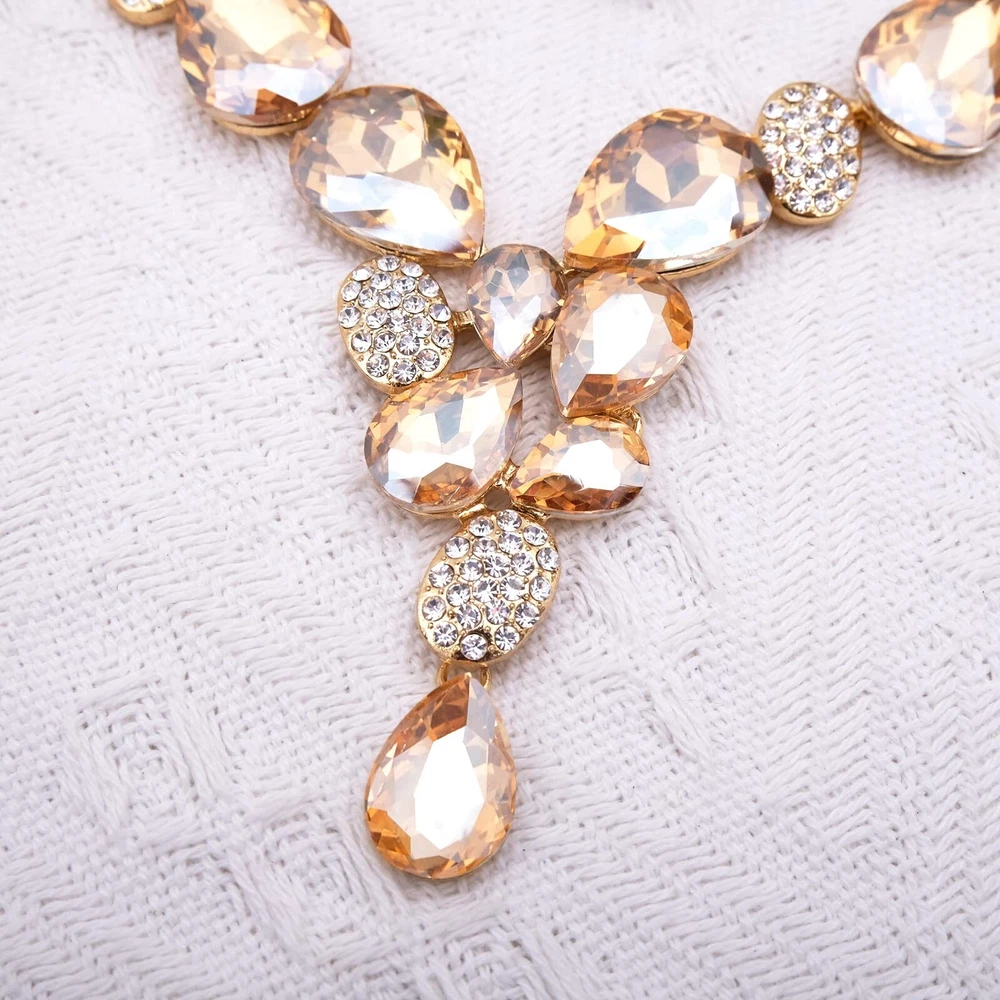 CSY Elegant Austrian Crystal Necklace Drop Earrings Bracelet Set Bridal Wedding Prom Costume Jewelry Sets for Brides Bridesmaid Product Details Color: champagne gold Brand: CSY MPN: Does not apply UPC: Does not apply EAN: Does not apply Department : womens Date First Available : April 20, 2023 Manufacturer : CSY Brand, Seller, or Collection Name: CSY Metal stamp: 14K Metal: Gold plated base Material: Crystal, Rhinestone Gem Type: crystal and rhinestones Setting: Sticking Chain: Mariner Clasp: Lobster Clasp Ring size: Adjustable