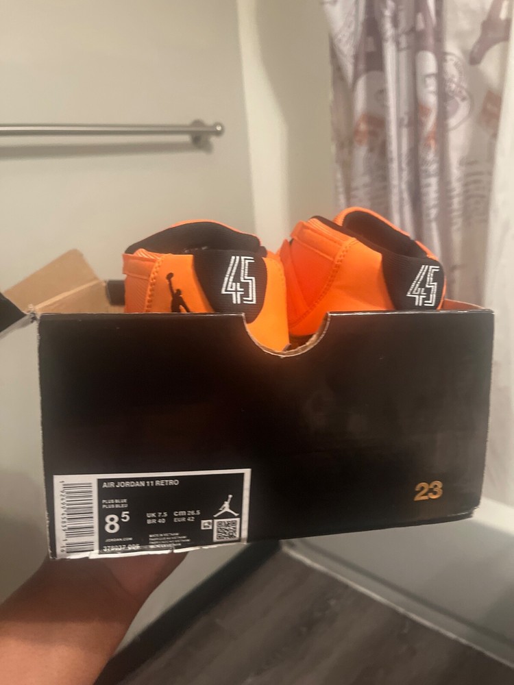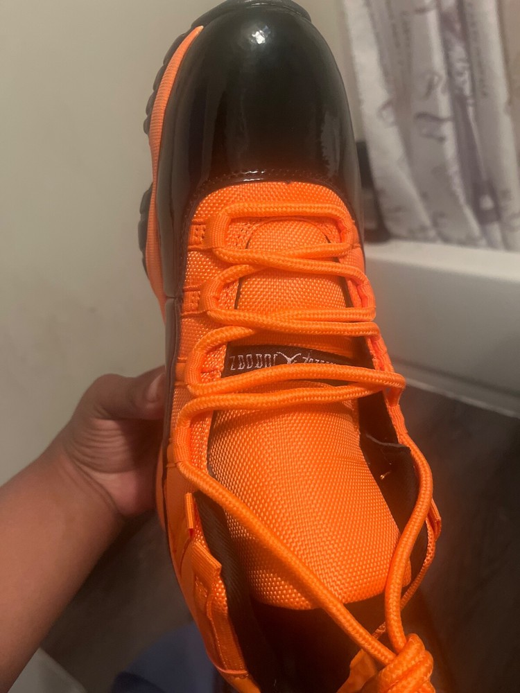 CT8012-800 Nike Air Jordan 11 Black and Orange men's basketball shoes. Condition is New with box. Shipped with FedEx Ground or FedEx Home Delivery.