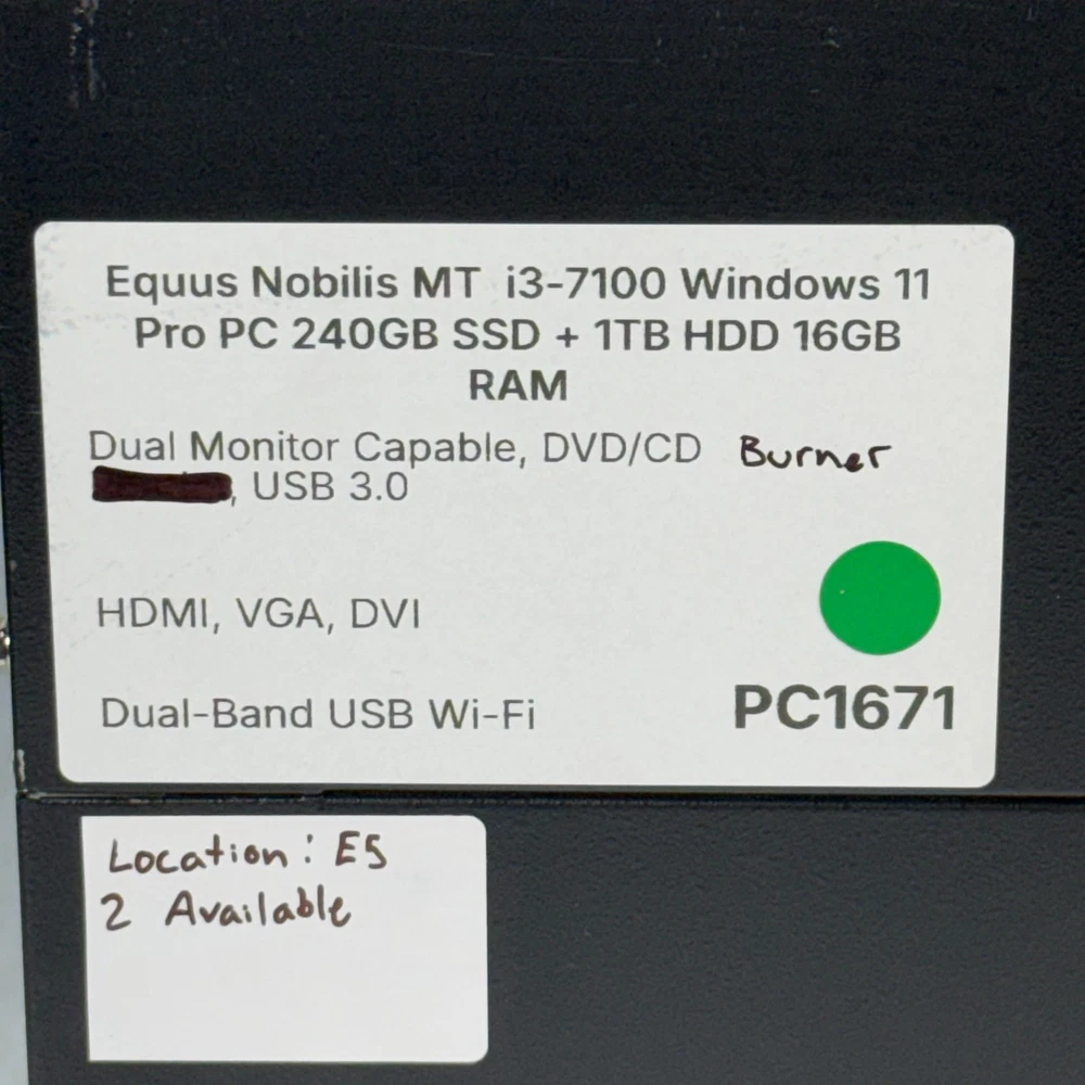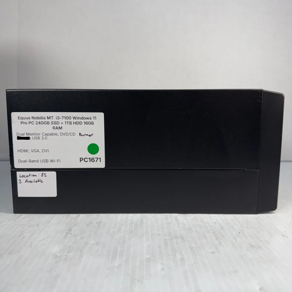 Professionally refurbished with a fresh, activated install of Windows 11 Pro 64-bit (25H2, latest version). This PC is fully tested and boots up fast thanks to the SSD Drive. As a refurbished, pre-owned unit, it may show light cosmetic wear, such as light scratches or scuff marks. This is a CTL Box with an ASUS H110M-C Motherboard Inside. Sides and front will have light scratches. Fast Dual-Band, USB Wireless (Wi-Fi) Adapter Included! 13" Tall, x 12" Deep, x 5.5" Wide Intel Core i3-7100 3.90GHz CPU 240GB SSD + 1TB HDD 16GB RAM DDR4 Video Outputs: HDMI, VGA, DVI Gigabit Ethernet, Audio Jack, & Dual Monitor Capable, DVD/CD Burner, USB 3.0 It will be packed carefully.