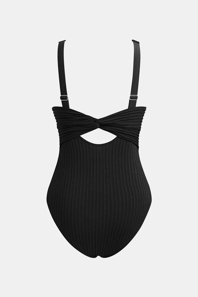 $ 11.61CUPSHE Black Plunging Twist Mesh Panel One Piece Swimsuit Medium *NWT*