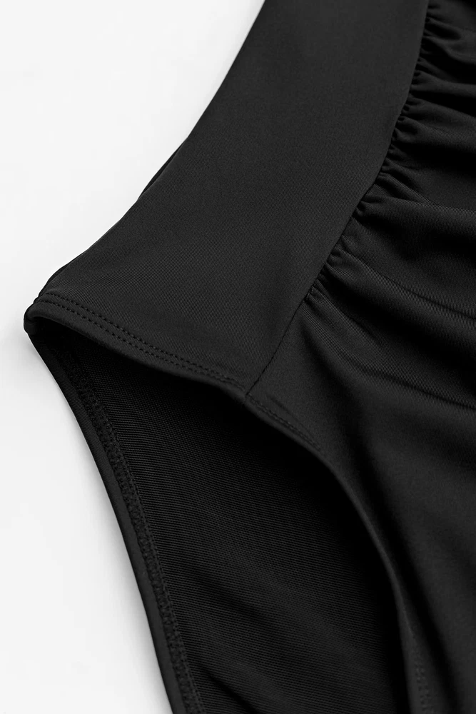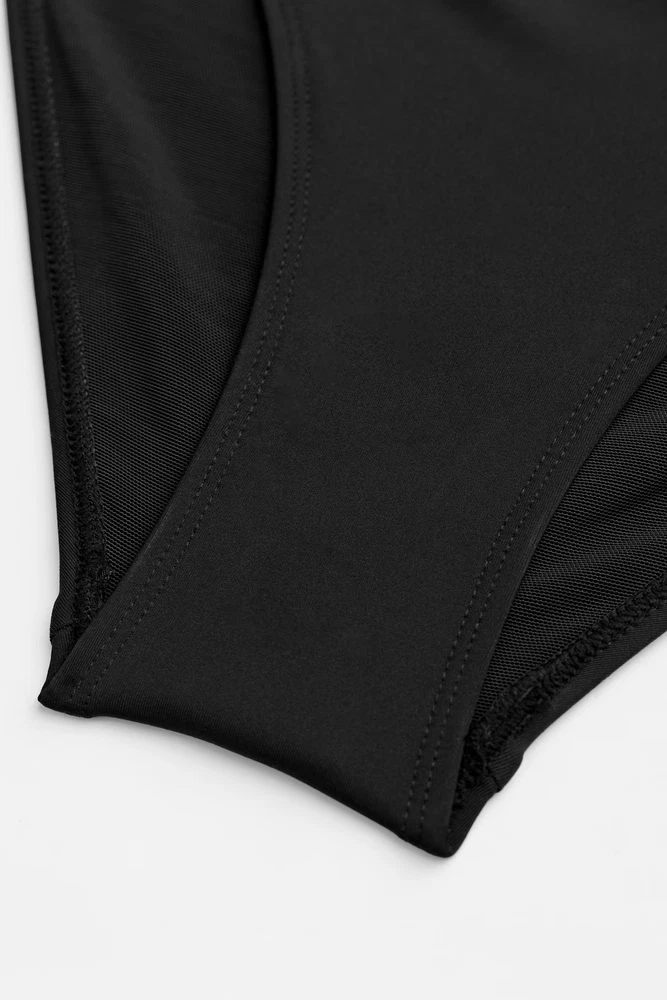 $ 6.85CUPSHE Plunge Paneling Cross Tie Back Long Torso Swimsuit Black Small *NWT*