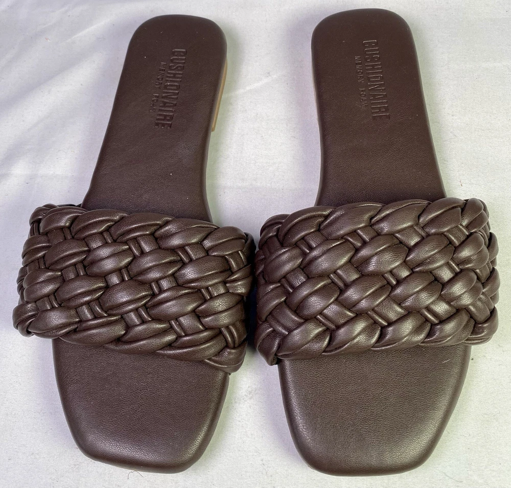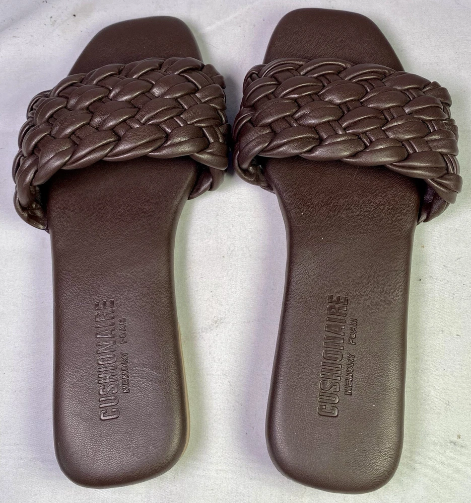 US Shoe Size:6Upper Material:Faux LeatherSeller Notes:“Good condition as seen in photos.”Type:Sandalgtin13:0808650324695Features:Memory FoamBrand:CUSHIONAIREHeel Style:FlatDepartment:WomenStyle:SlideCountry/Region of Manufacture:ChinaUPC:0808650324695Heel Height:Flat (Under 1 in)Color:BrownShoe Width:M