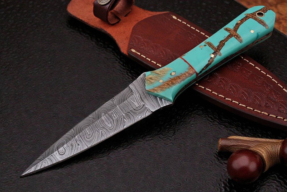 Handle Material: RESIN HANDEL Blade Color: Gray Type: BOOT KNIFE, Boot, Bowie, Bowie Knife, Combat, Everyday Carry, Hunting, Survival, Throwing Blade Length: 4" INCH Handmade: Yes Blade Type: Needle Point Blade Material: Damascus Steel Tang: Full Original/Reproduction: Original Blade Edge: VERY SHARP Dexterity: Ambidextrous Country of Origin: United States Brand: Damascus Vintage: No Features: Sheath Included