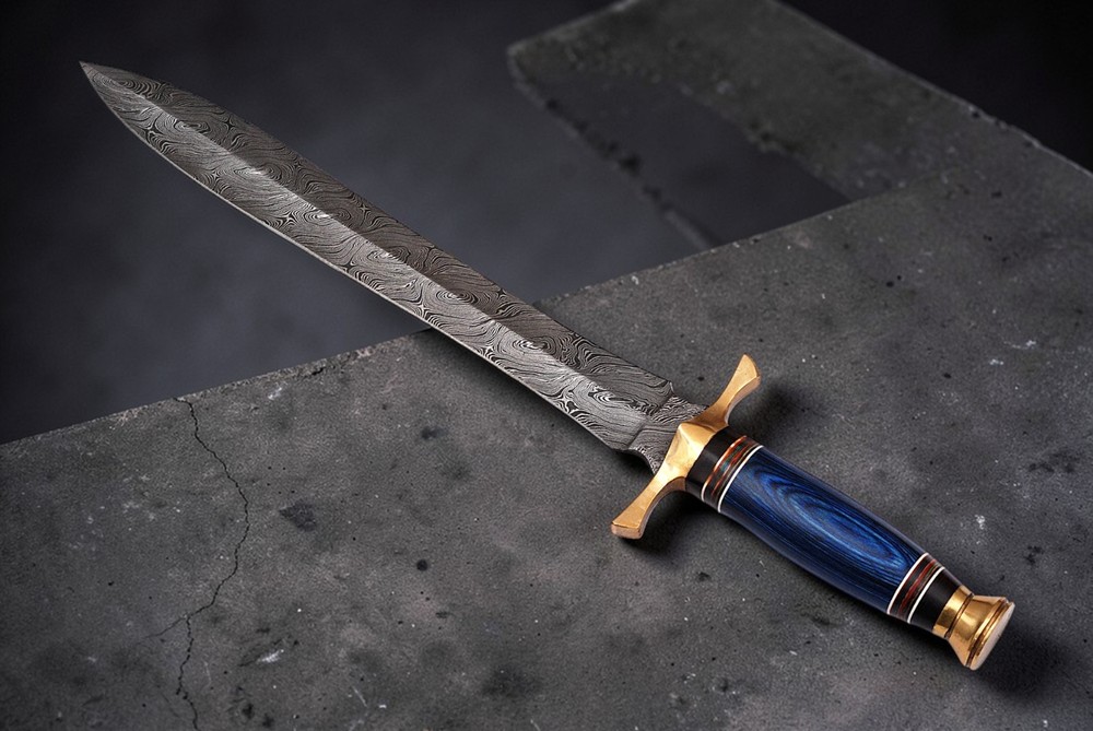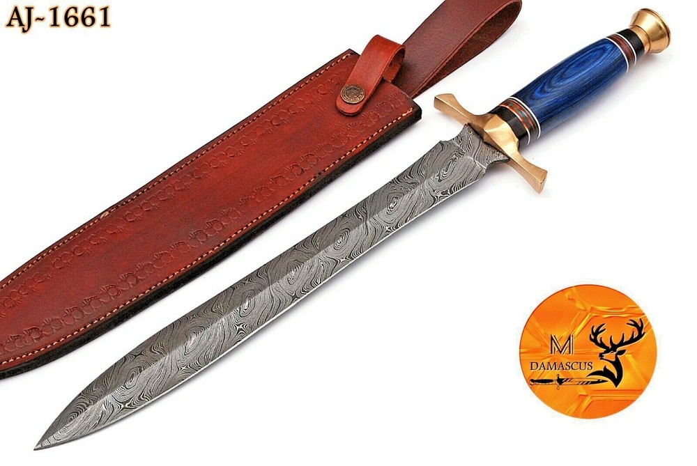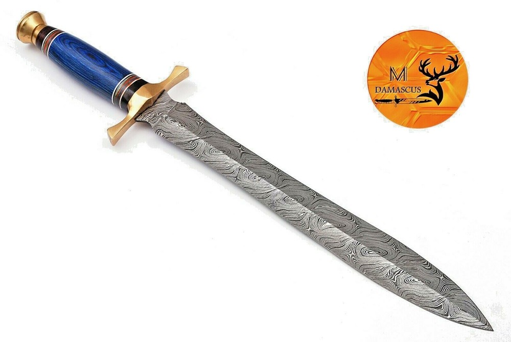 CUSTOM MADE HAND FORGED DAMASCUS STEEL SWORD Wood & Brass Guard Handle This superb design Sword is hand forged. Blade of this Sword has a nice file work and is made of 512 layers of 4340 stainless steel and 1075 high carbon steel and hardness 55-58 HRC . This robust Sword is lab tested under intense conditions, the balance and shape of this Sword ensures perfect grip. Overall Length: 19” Inches Blade Length: 13.5” Inches Handle Length: 5.5” Inches Damascus Design: Twist Pattern Layers: 512 Sheath: Leather Hand Forged Hardness: 55-58 HRC Package Includes: with Sheath Care Instructions: Keep the knife dry after each cleaning. Warning: Take care when removing product from packaging. Keep fingers clear of blades. Store away from children. Payments We accept only PayPal . All major credit and debit cards are accepted through Paypal. Shipping We ship only to your registered PayPal address. Your order ships out from United state America With in 3 to 4 business Days Returns All returns are accepted with Reason Buyers who wish to return a product must do so within 3 days after receiving delivery (please contact us for return address and information) The product must be in original condition when returned No refund for return shipping handling fee Feedback Our eBay customer satisfaction and eBay reputation is extremely important to us. We truly appreciate your positive feedback! When you rate the shipping time please take international transit into consideration. Your recognition will make us more confident to develop business and serve you better. If you have any problems with your order or are dissatisfied with the product, please contact us first. Please do not leave neutral or negative feedback. We will do our best to sort out any problems to your satisfaction. Support We promise to answer all e-mails within 1 business day. Since we sell worldwide, we communicate using the English language. Note DISCLAIMER We are not responsible for any injuries associated with the use of our tools. Our products are intended for legal use only by responsible buyers. Therefore, we will not sell our products to anyone under the age of 18. Before bidding please check your country laws as some countries Custom don't allow this. If your purchase is held by Custom Authorities in your Country/State we will not be responsible and no refund will be issued .