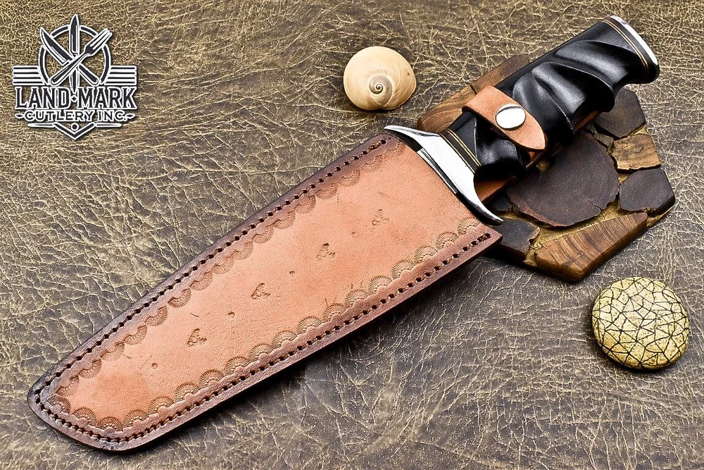 Custom Hand Made D2 STEEL HUNTING BOWIE KNIFE WITH BEAUTIFUL BLACK HANDLE We offer a shipping discount for More then one purchased . And discount will be apply on combine invoice, Discount will not apply on separate payment. ITEM DETAILS OVER ALL LENGTH 14.0 inches long (Approx) HANDLE LENGTH 5.0 inches long (Approx) BLADE LENGTH 9.0 inches long (Approx) BLADE HARDNESS 58-60 HRC Which Holds The Sharp Edge For Long Time. HANDLE BLACK COVER LEATHER SHEATH This Awesome custom made KNIFE has a nice hand forged with the combination of 4340 & 1080 steel. HOW OUR DAMASCUS IS MADE: All our Damascus is real and not just an acid etch. Damascus is a mixture of 1080HC and 4340 nickel carbon. You heat them up together and then fold the bar over and over to get the desired layers, ours are 396 layers. Then you burn the blade in acid, and it turns the nickel satin color and the high carbon turns blackish gray. This is how the layers are exposed to show the layers of the new steel created coined "Damascus". All Damascus is acid etched to show the layers. If you high polish the metal it will be shinny satin like all steels. Only after you burn the sides of the blade with acid do you see the layers of the two steels. Makes sense? After we make our knives we high polish the handles and put an edge on the blade. The high polishing buffs off the acid burned layer of the handle, and the blade edge is sharpened and the acid burned edge becomes satin. You can re-burn the tang of the blade near the handles and the edge of the blade and it will show the layers once more. All our knives are hand made, durable and unique ***** YOU WILL RECEIVED THE SAME KNIFE Qality Standards Our Damascus blades are made from high quality non-stainless steels which rival or exceed any Damascus blade made from the 10 series with 4340. Our Damascus combination has taken years to perfect and has been tested under a variety of application which will offer professional performance in categories of toughness, strength (lateral stress) and edge honing and holding ability. In a 5 spot Rockwell test our blades will average near or close to 58 which offers a perfect balances between its toughness and strength.Our blades due to carbon content need to be regularly treated with wax and/or 3 in 1 oil to maintain its superior quality. Questions if you have any question feel free to send us message we aim to answer all questions within 24 hours Feedback If you are not satisfied with our service please contact us before leaving any negative or natural feedback. We will resolve all issues as quickly as possible. Disclaimer We are not responsible for any injuries associated with the use of our tools. Our products are intended for legal use only by responsible buyers. Therefore, we will not sell our products to anyone under the age of 18. Before bidding please check your country laws as some countries Custom don't allow this. If your purchase is held by Custom Authorities in your country/State we will not be responsible for that and no refund will be issued Shipping We offer a 20% shipping discount for More then one purchased . And discount will be apply on combine invoice, Discount will not apply on separate payment We ship within 24 hours after receiving complete payment but this can be delayed due to week ends or Governments and Religious Festivals . . This is beyond our control and we apologize for this inconvenience. Precautions Our Tools are very sharp so open and use them very carefully We are not responsible for any injuries associated with the use of our tools Tips to Care knife 1. NEVER STORE YOUR KNIFE FOR LONG TIME IN LEATHER SHEATH. 2. LEATHER CAN ABSORB WATER, WHICH WILL RUST THE KNIFE. 3. ALWAYS CLEAN THE BLADE AFTER USING WITH OIL OR WAX