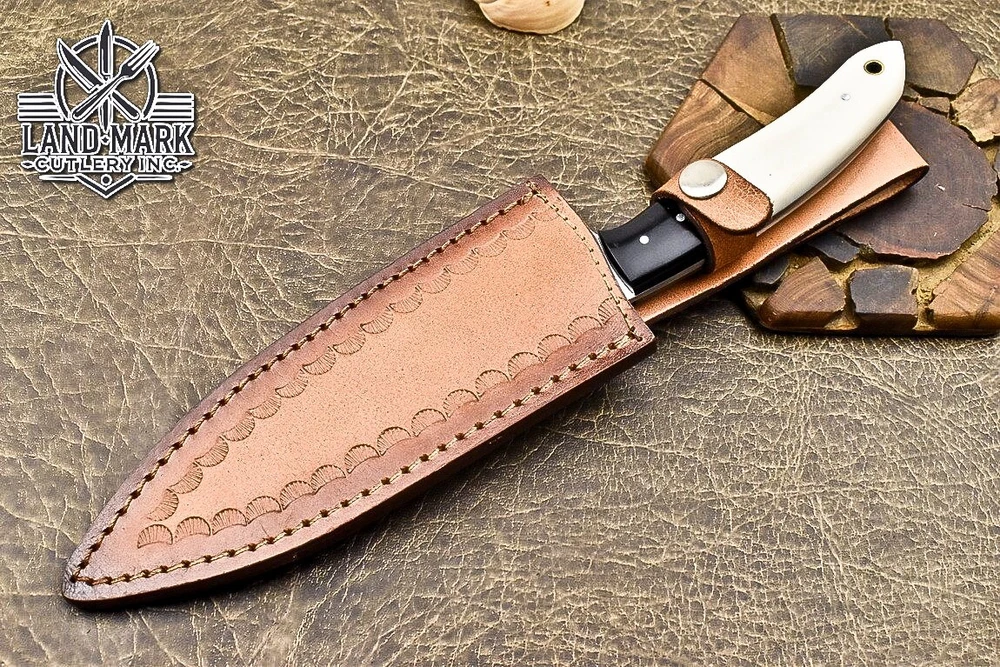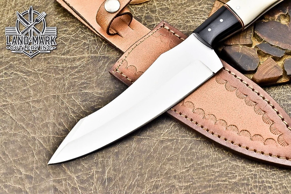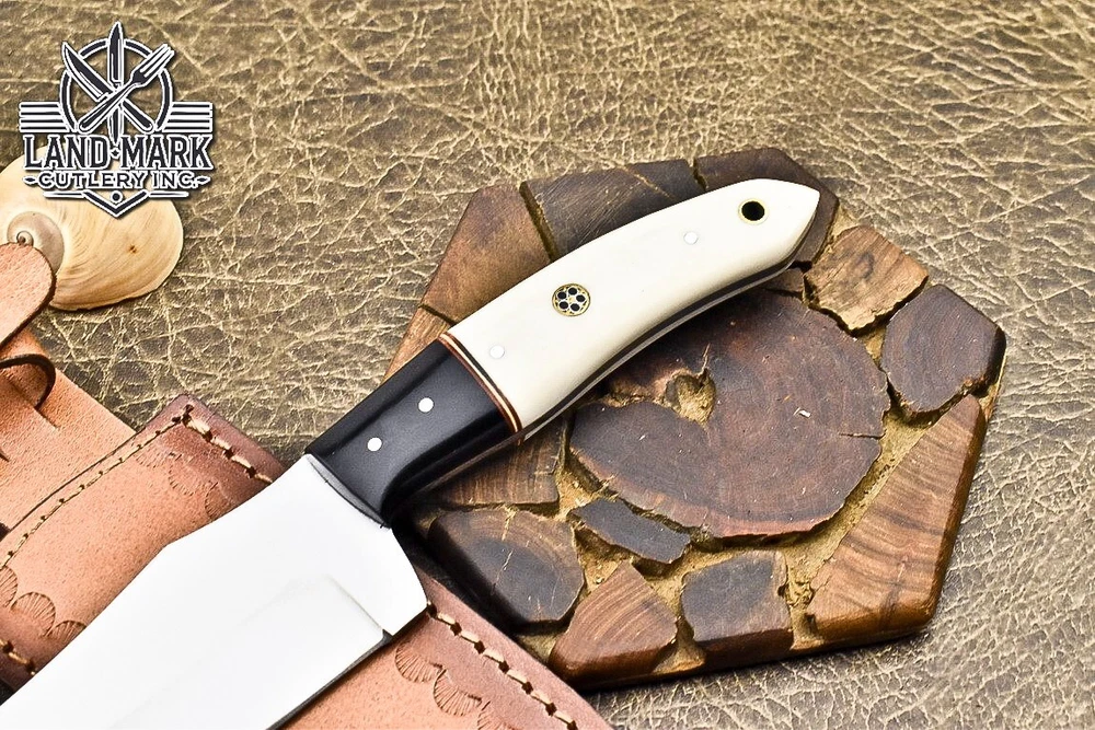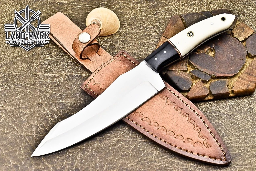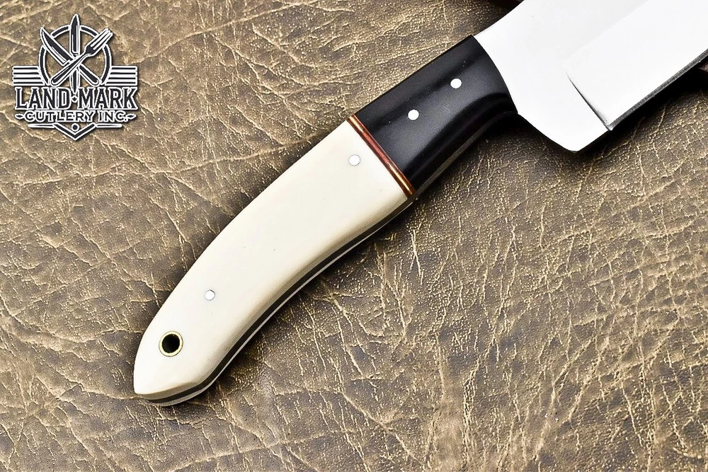 Custom Hand Made D2 STEEL KITCHEN CHEF KNIFE WITH BONE HANDLE We offer a shipping discount for More then one purchased . And discount will be apply on combine invoice, Discount will not apply on separate payment. ITEM DETAILS OVER ALL LENGTH 14.0 inches long (Approx) HANDLE LENGTH 5.0 inches long (Approx) BLADE LENGTH 9.0 inches long (Approx) BLADE HARDNESS 58-60 HRC Which Holds The Sharp Edge For Long Time. HANDLE BONE COVER LEATHER SHEATH This Awesome custom made KNIFE has a nice hand forged with the combination of 4340 & 1080 steel. HOW OUR DAMASCUS IS MADE: All our Damascus is real and not just an acid etch. Damascus is a mixture of 1080HC and 4340 nickel carbon. You heat them up together and then fold the bar over and over to get the desired layers, ours are 396 layers. Then you burn the blade in acid, and it turns the nickel satin color and the high carbon turns blackish gray. This is how the layers are exposed to show the layers of the new steel created coined "Damascus". All Damascus is acid etched to show the layers. If you high polish the metal it will be shinny satin like all steels. Only after you burn the sides of the blade with acid do you see the layers of the two steels. Makes sense? After we make our knives we high polish the handles and put an edge on the blade. The high polishing buffs off the acid burned layer of the handle, and the blade edge is sharpened and the acid burned edge becomes satin. You can re-burn the tang of the blade near the handles and the edge of the blade and it will show the layers once more. All our knives are hand made, durable and unique ***** YOU WILL RECEIVED THE SAME KNIFE Qality Standards Our Damascus blades are made from high quality non-stainless steels which rival or exceed any Damascus blade made from the 10 series with 4340. Our Damascus combination has taken years to perfect and has been tested under a variety of application which will offer professional performance in categories of toughness, strength (lateral stress) and edge honing and holding ability. In a 5 spot Rockwell test our blades will average near or close to 58 which offers a perfect balances between its toughness and strength.Our blades due to carbon content need to be regularly treated with wax and/or 3 in 1 oil to maintain its superior quality. Questions if you have any question feel free to send us message we aim to answer all questions within 24 hours Feedback If you are not satisfied with our service please contact us before leaving any negative or natural feedback. We will resolve all issues as quickly as possible. Disclaimer We are not responsible for any injuries associated with the use of our tools. Our products are intended for legal use only by responsible buyers. Therefore, we will not sell our products to anyone under the age of 18. Before bidding please check your country laws as some countries Custom don't allow this. If your purchase is held by Custom Authorities in your country/State we will not be responsible for that and no refund will be issued Shipping We offer a 20% shipping discount for More then one purchased . And discount will be apply on combine invoice, Discount will not apply on separate payment We ship within 24 hours after receiving complete payment but this can be delayed due to week ends or Governments and Religious Festivals . . This is beyond our control and we apologize for this inconvenience. Precautions Our Tools are very sharp so open and use them very carefully We are not responsible for any injuries associated with the use of our tools Tips to Care knife 1. NEVER STORE YOUR KNIFE FOR LONG TIME IN LEATHER SHEATH. 2. LEATHER CAN ABSORB WATER, WHICH WILL RUST THE KNIFE. 3. ALWAYS CLEAN THE BLADE AFTER USING WITH OIL OR WAX